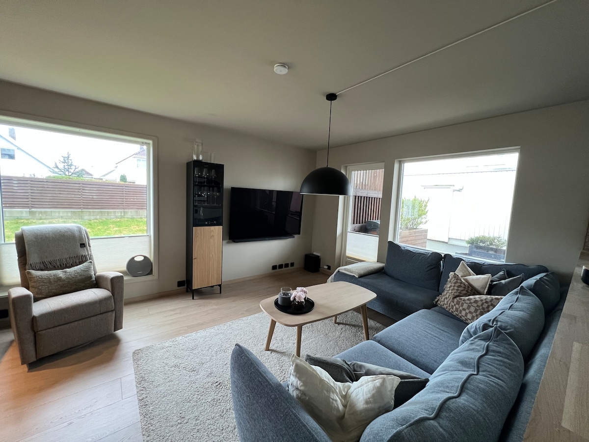 Un lugar moderno y cómodo para alojarse en una calle tranquila, a solo 10 minutos a pie de la estación de tren, a 5 minutos a pie de los autobuses y a 15 minutos a pie del centro de la ciudad. El hermoso parque Sandved está a menos de 10 minutos a pie, con una cafetería y un arroyo maravilloso rodeado de robles. Siéntete como en casa en nuestro precioso apartamento equipado con todo lo que puedas necesitar y disfruta del jardín privado justo a la puerta de tu casa. A 7 minutos a pie de la tienda de comestibles. A 20 minutos en tren de Stavanger. Autopista a 2 minutos en coche.