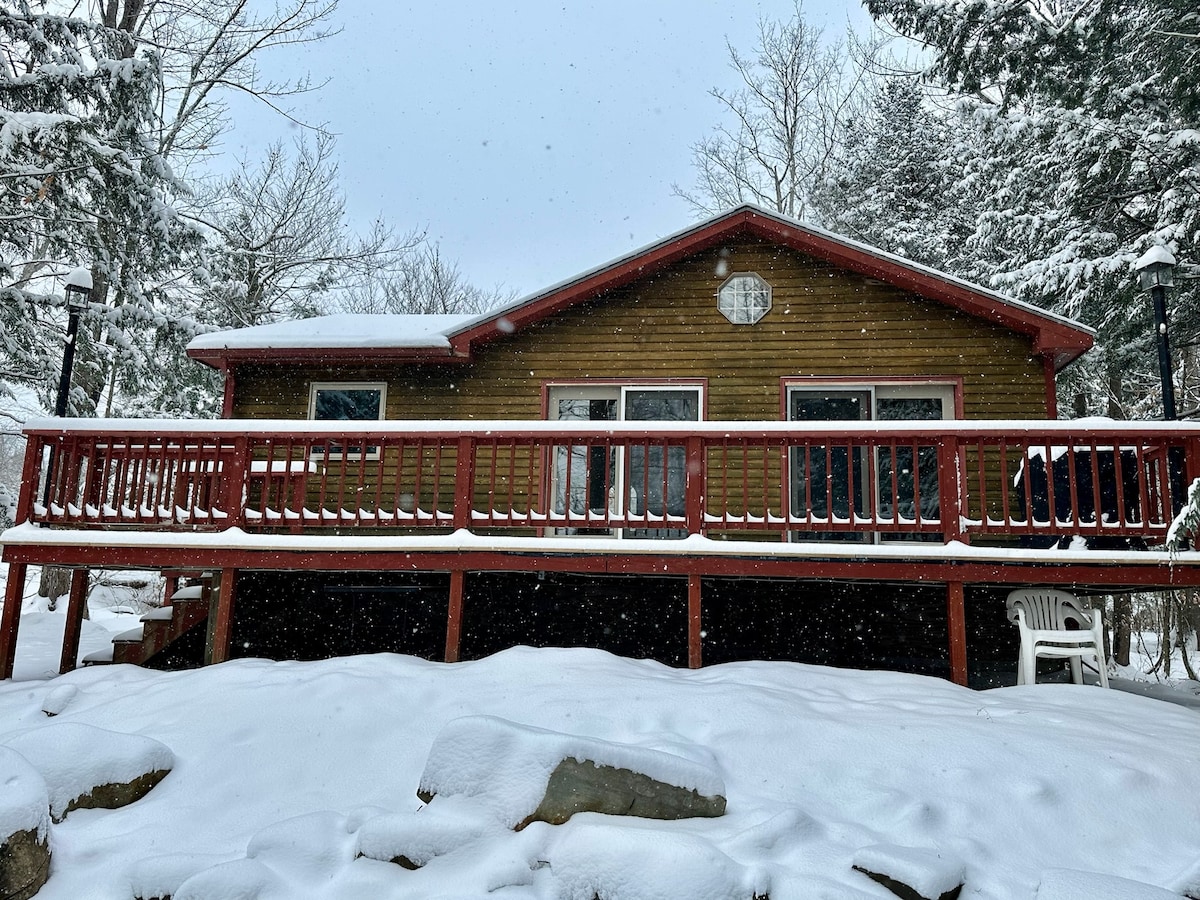 ¡La mejor vista del lago! 500 pies de fachada en un punto. Lanzamiento de barco privado y zona de muelle disponible. Cubierta para ver la puesta de sol. Fogata al aire libre, así como inserto de gas interior. Parrilla de propano en el sitio. Hay mucho aparcamiento disponible. En invierno, ubicación ideal para practicar motos de nieve y pesca en hielo. Justo en el lago y luego 4 ubicaciones para llegar a los senderos locales/ITS. Gran pesca a 200 pies del porche. Una vez que se haya derretido el hielo, pesca el mojarra negra y los pequeños desde la comodidad de un embarcadero privado.