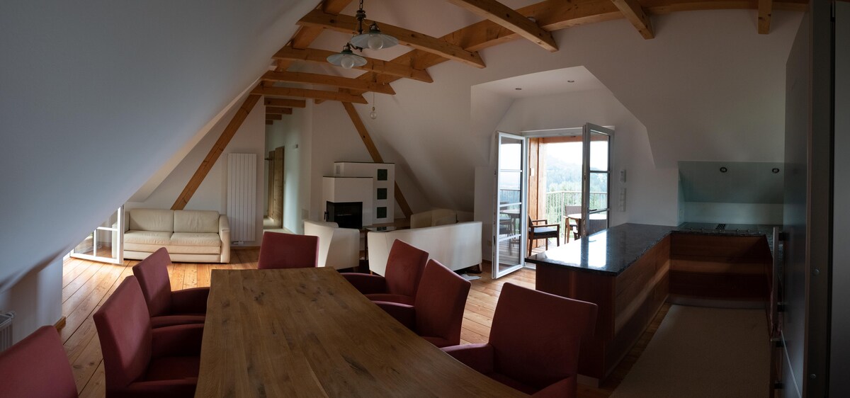 Un hermoso apartamento loft en el centro de la plaza, con una rica historia... en el pasado, había una posada que albergaba a personas de cerca y de lejos... y ahora hemos dado su vida de nuevo. Intentamos que nuestros huéspedes se sientan bien al tomarse el tiempo para sí mismos y disfrutar con nosotros. Así que ahora hemos agregado una sauna finlandesa a la oferta, que es una gran relajación para el cuerpo y el espíritu. Visítenos, no te arrepentirás