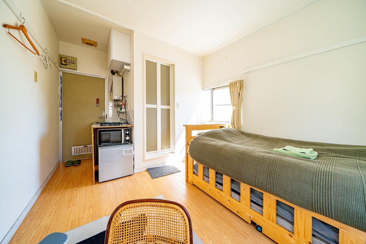 Es una habitación sencilla y pequeña. Una pequeña habitación privada y sencilla. Hemos añadido más escritorios para trabajar con el ordenador. Si desea utilizar el aparcamiento o el espacio para bicicletas, por favor, comuníquemelo con antelación. Por favor, avíseme antes de reservar si necesita aparcamiento también para bicicletas. Hay una lavandería de monedas en la planta baja. I have set up a coin laundry on the 1st floor.