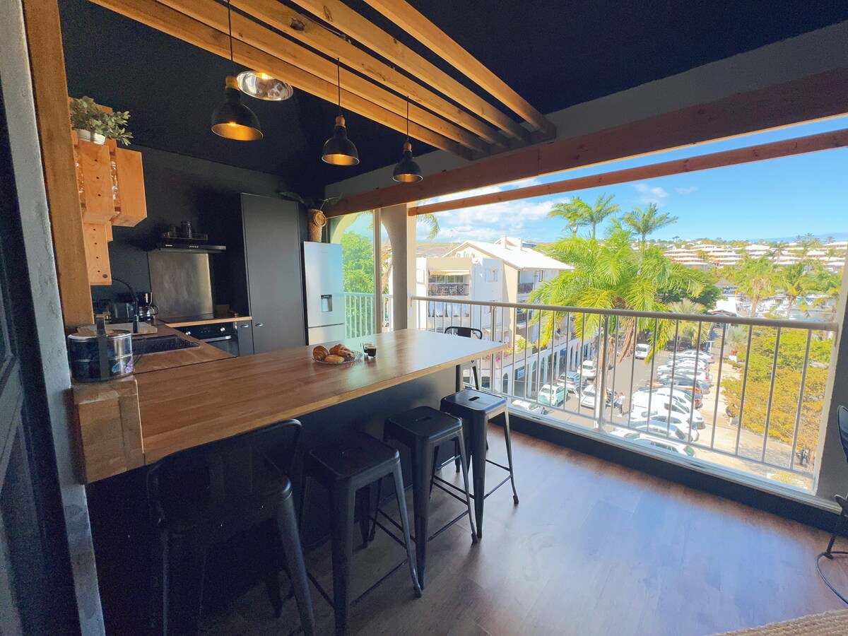 Magnífico ático con una gran terraza con vistas panorámicas al mar y a la montaña, 2 dormitorios con vestidor y baño privado, disfrute de la tranquilidad de la residencia, de su exposición soleada durante todo el día y disfrute de esta impresionante vista del atardecer, la proximidad de la laguna, el centro de la ciudad y las tiendas le encantarán, un aparcamiento subterráneo privado estará a su disposición durante su estancia, la laguna de Trou d'Eau se encuentra a 800 m