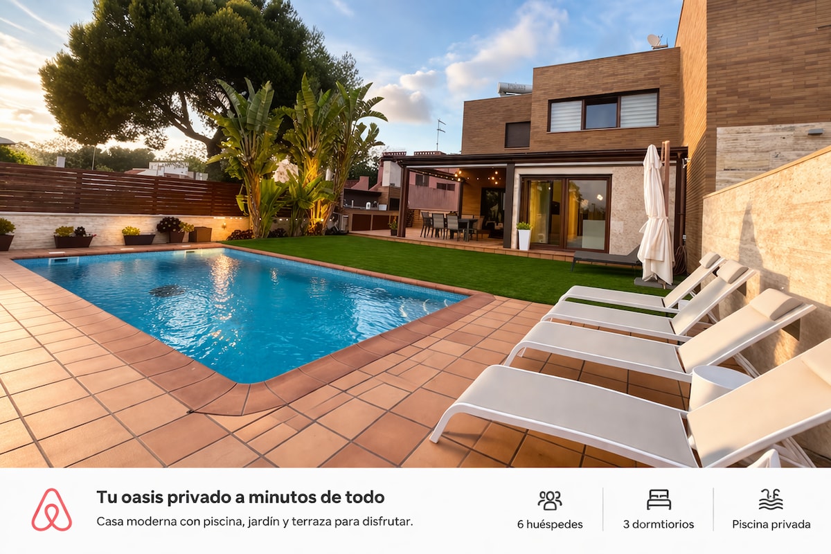 House 4bdrm+GYM+cinema (132)+desk+garden 20min BCN