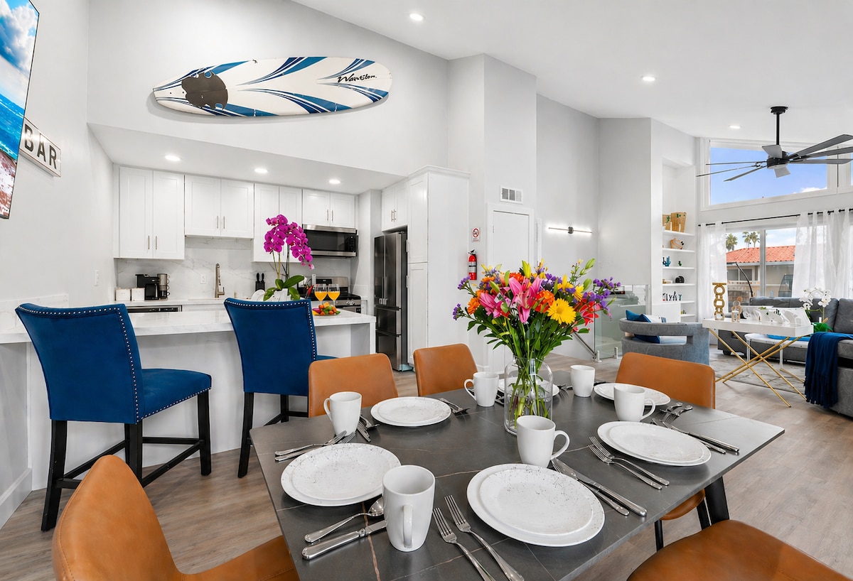 Sip wine from your private rooftop deck as sailboats catch the last light at sunset — steps to the sand, Newport Pier, Mom's Beach, waterfront dining and cafes. Designed for laid-back luxury with rare A/C & garage parking. Prime location — no car needed. This Guest Favorite comes stocked: ✓ Rooftop harbor view ✓ Rare A/C ✓ Garage + EV charger ✓ Beach towels, chairs, boards ✓ Pro kitchen, wine & coffee bar ✓ Warm outdoor shower ✓ 75" TV + Sonos + fast Wi-Fi ✓ Cozy gas fireplace Dates go fast.