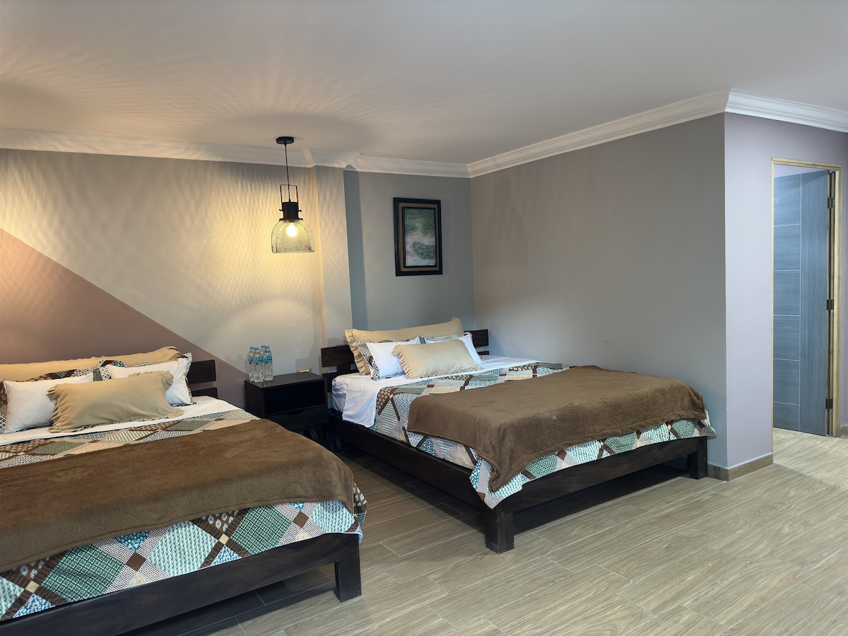Escápate a la tranquilidad de Juayúa en la habitación doble #3 de La Villa de los Alas. Ideal para parejas, ofrece baño privado con agua caliente, TV con streaming, cocina compartida y jardín. Disfruta de parqueo privado con acceso por carretera principal, a menos de 5 minutos del parque central. ¡Comodidad, naturaleza y encanto en un solo lugar!