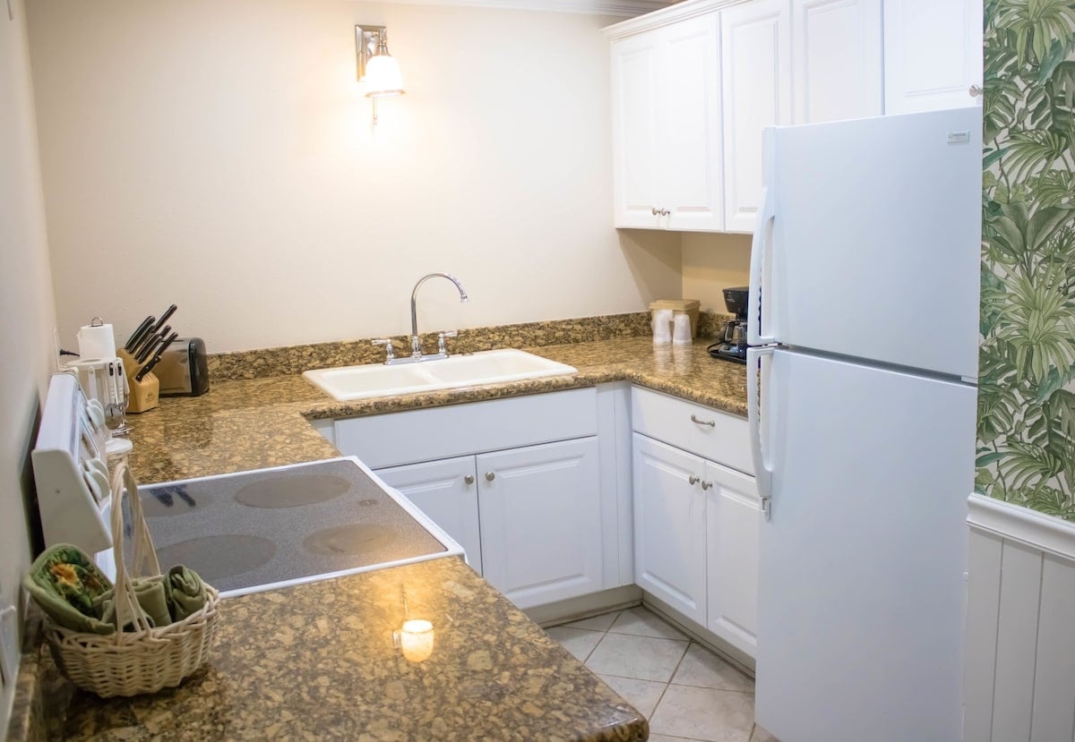Cocina de la habitación doble con dos camas queen del Blue Sands Inn