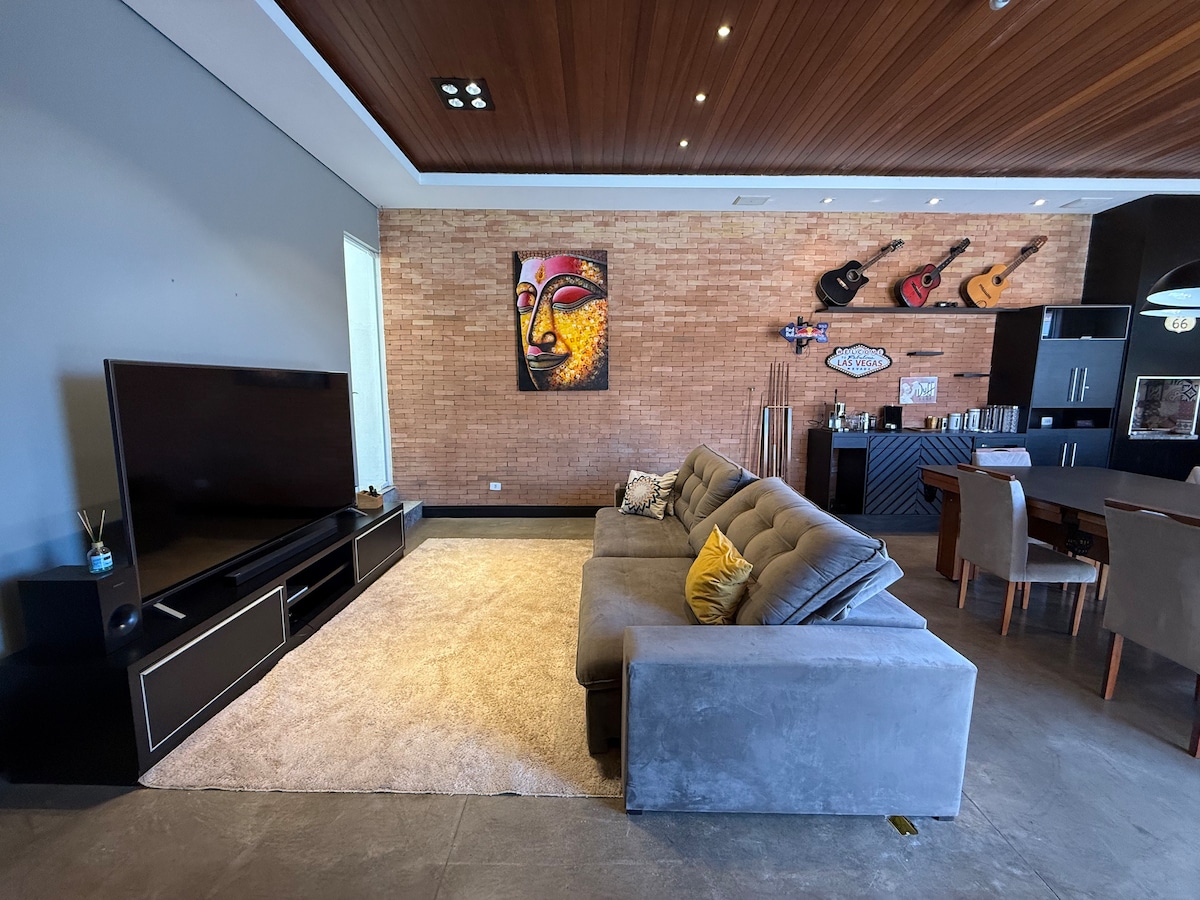 ¡Se llama Space! En Americana, ¡tu descanso es acogedor y no apretado! ¡Nuestro espacio te da la bienvenida con cariño y comodidad! Tenemos un garaje con una puerta electrónica. La casa está en el corazón de la ciudad, con fácil acceso a todas las regiones. ¡Ojalá te sintieras en casa! **Atención** El garaje no admite vehículos largos. Ej.: S10, Hilux, Frontier, Amarok, Toro, F250, HAM. Estos vehículos pueden estacionar frente a la propiedad. Accesibilidad **LIBRAS**