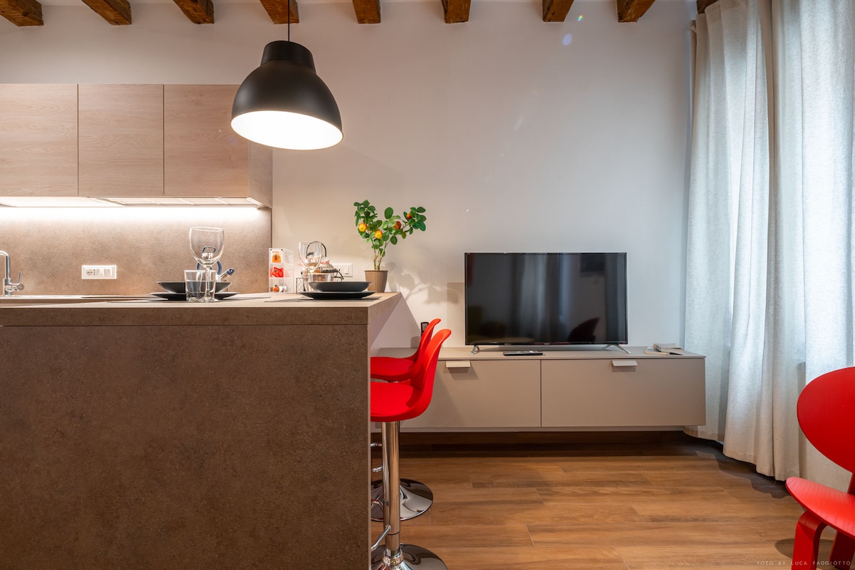 Apartamento recién reformado con techos altos con vigas a la vista, entrada independiente a 5 minutos a pie de la estación de tren. Descubre la auténtica Venecia alojándote en este apartamento en el barrio de Santa Croce. El apartamento, ubicado en un edificio típico veneciano, combina las comodidades modernas con el encanto histórico de los interiores originales sacados a la luz durante la renovación. Las ventanas luminosas hacen que el entorno sea acogedor y cómodo, garantizando paz y privacidad.