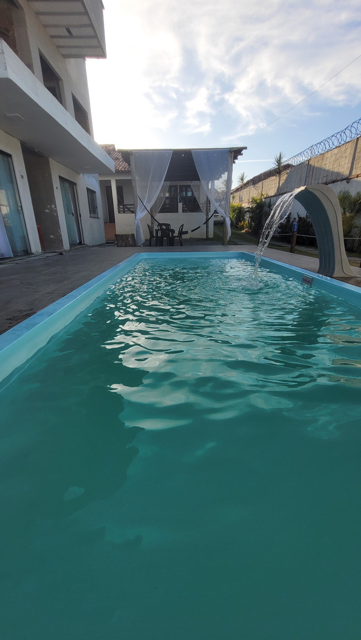 Uma acomodação aconchegante com um jardim amplo, repleto de plantas diversas. Pela manhã os hóspedes são despertados pelo canto dos pássaros. Uma piscina convidativa, ideal para um mergulho refrescante. O local esta próximo ao mar, facilitando o acesso a praia. Na varanda a rede esta disponível para um descanso em um ambiente tranquilo e confortável.