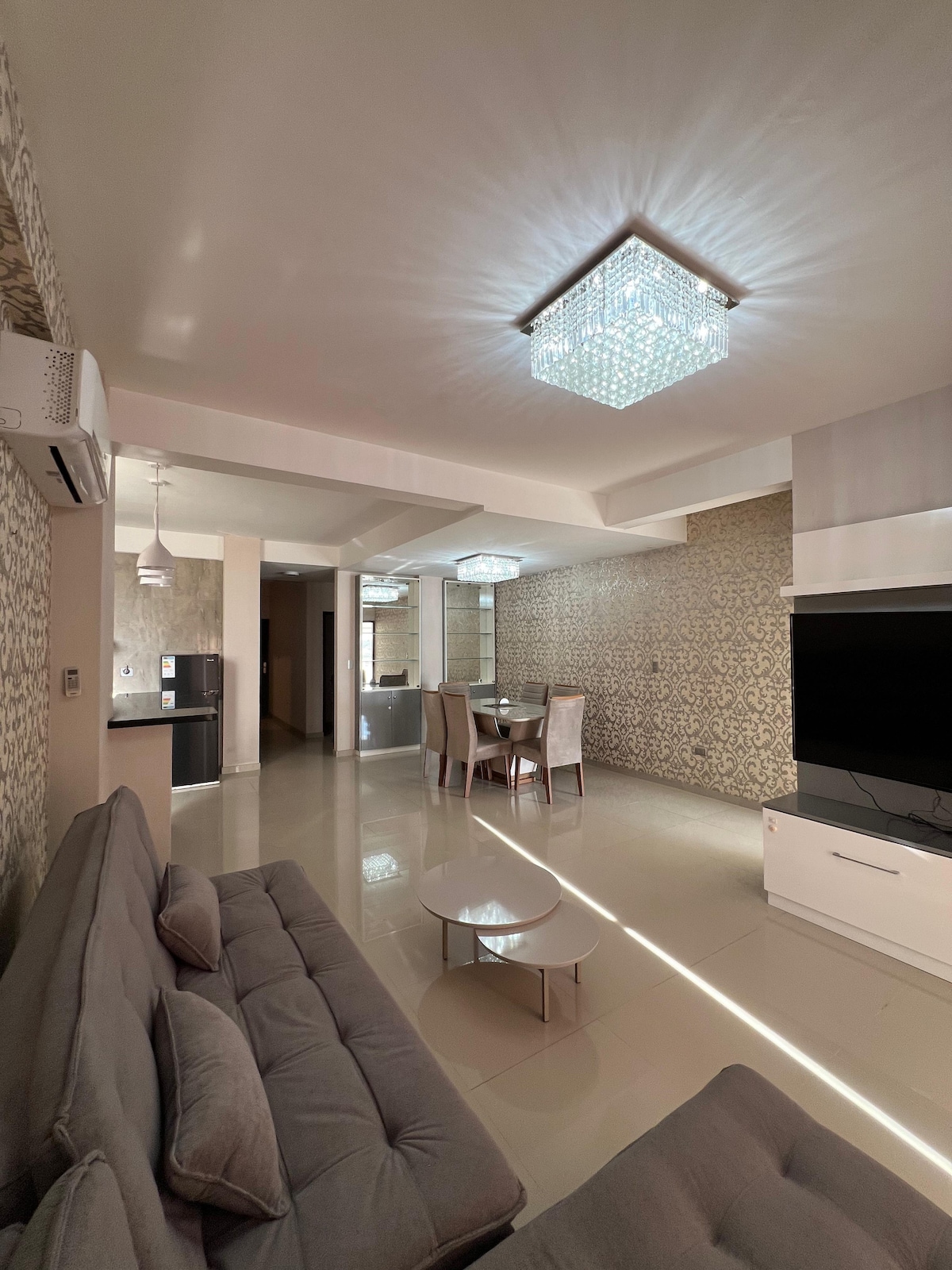 Disfruta de una experiencia de lujo en este céntrico apartamento con una excelente ubicación en el corazón de Equipetrol, frente al Hotel Los Tajibos, cerca de todos los mejores sitios de Santa Cruz. Un apartamento elegante y acogedor con todas las comodidades para hacer de tu estadía un momento inolvidable