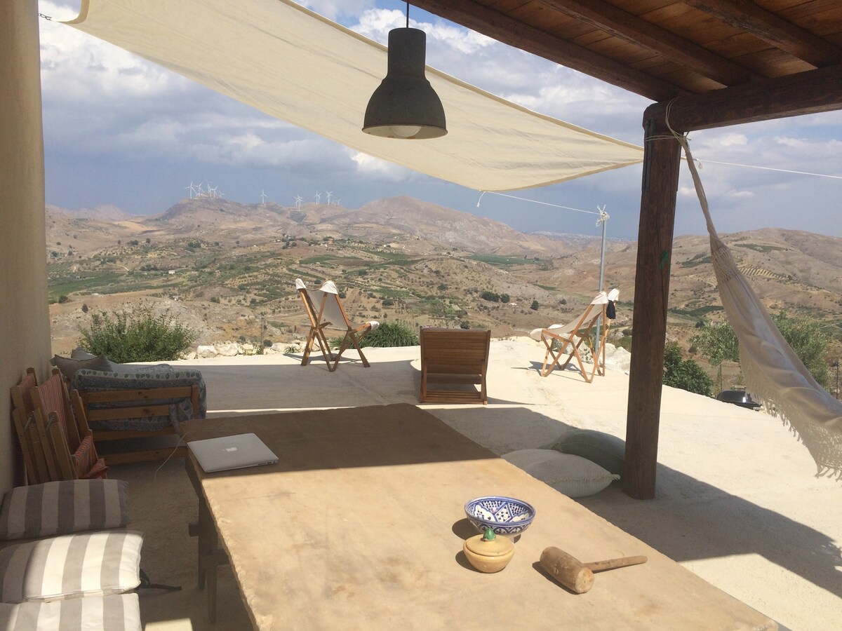Nuestra pequeña casa está en medio del campo, no muy lejos de la ciudad de San Giovanni Gemini. Está idealmente ubicada para aquellos que viajan por la parte central occidental de la isla siciliana. En esta zona, puedes hacer senderismo en la hermosa “Reserva Natural de la Montaña Cammarata”. El lugar está a solo 20 km del Teatro Andrómeda y de la Ermita de Santa Rosalía, a 45 km de los templos griegos de Agrigento, a 40 km del Parque Cultural Farm en Favara e Sant'Angelo Muxaro.