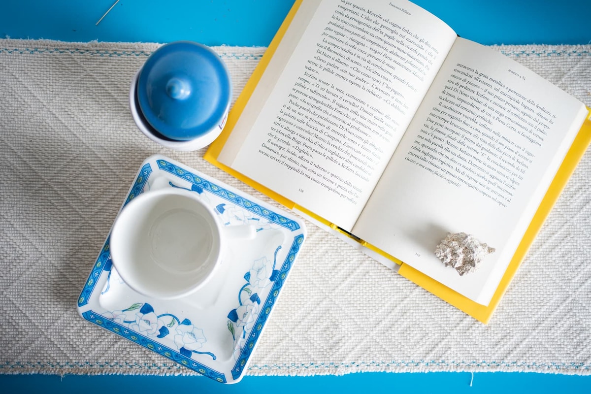 Semplice bilocale spazioso, colorato ,essenziale e funzionale con balcone vista mare. Piccolo angolocottura,con cucina a induzione a due piastre ,attrezzata di pentole,padelle,posate e stoviglie per potersi cucinare qualcosa di SEMPLICE, frigo-freezer e lavello. Forniamo le buste per separare correttamente la spazzatura.