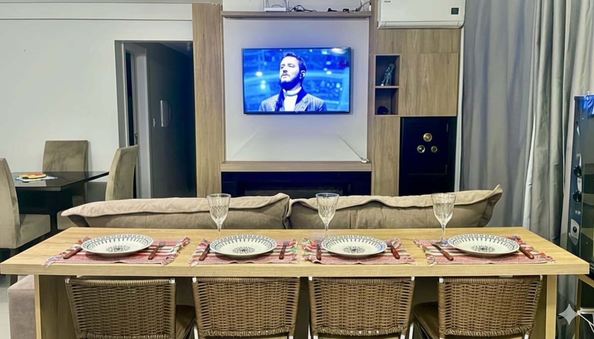 Departamento sofisticado en la noble región de Santa María 🛏️ 3 dormitorios | 🛁 2 baños | Espacio de 🚗 garaje | 🌬️ Aire acondicionado | 🚪 Ascensor ¡Quédate con comodidad y practicidad! El amplio departamento ofrece: ✅ Ubicación privilegiada: centros comerciales, McDonald's, mercados, restaurantes ✅ Comodidad: aire acondicionado de 1 dormitorio y sala de estar, internet rápido, TV inteligente, sábanas y toallas ✅ Ideal para familias, viajes de trabajo o lugares de interés 🔑 ¡Reserva ahora y vive una experiencia con la máxima comodidad!