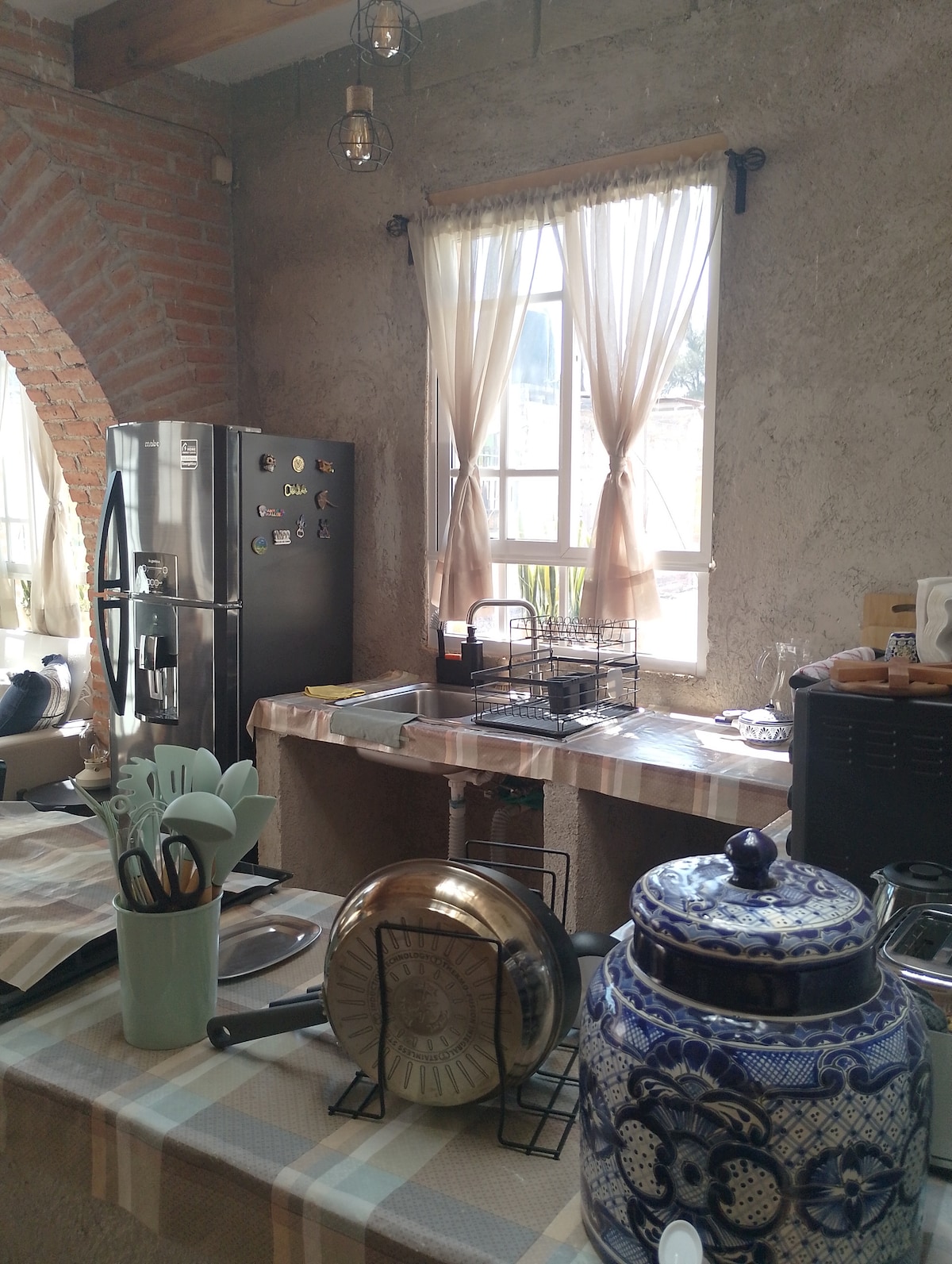 Casa con 2 habitaciones una con cama matrimonial y la otra habitación con litera 2 camas, sala compartida con televisión y baño, casa muy cerca del centro del Pueblo Mágico de San Martín de las Pirámides y 5 minutos de la Zona Arqueológica de Teotihuacan, casa bien iluminada, y decorada, cuenta con WiFi, estacionamiento privado, espacio con mueble que cuenta con horno de microondas, platos , tazas, vasos, cucharas, etc, café y té, un vez que reserva la casa es solo para el huesped(es).