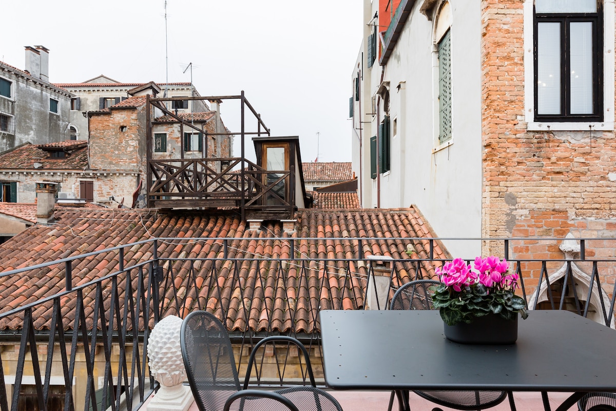 Acurrúcate con un libro, desayuna y cena mientras admiras la increíble vista de los campanarios y canales de Venecia, vive como un verdadero veneciano en el barrio más típico de Venecia a pocos pasos del puente de Rialto, Ca' D'oro y San Marco en un apartamento acabado con muebles y adornos hechos por artesanos venecianos y de Murano. Te sentirás como si estuvieras experimentando el fantástico ambiente de los años 1800, pero con todas las comodidades de un apartamento moderno. No te pierdas esta increíble experiencia.