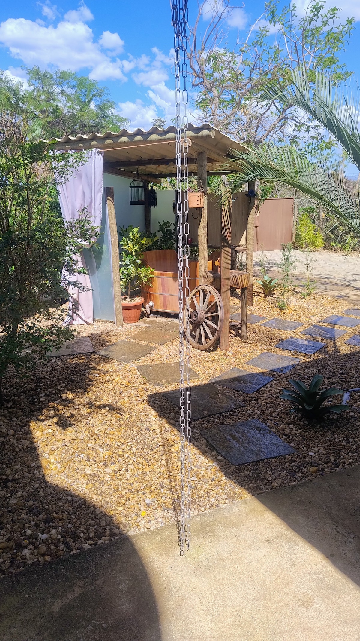 A casa é simples, rustica, tipo roça, com um riacho que passa ao lado e forma piscinas naturais de uso exclusivo dos hóspedes; Pode ser reservada por um casal, uma família, varios casais ou grupo amigos e familiares; a utilização da casa e da area de lazer é exclusivo do locatário Churrasqueira externa, cozinha com fogão à lenha e gás; 5 quartos, sendo 4 suítes com cama de casal e 1 quarto com beliches. O mobiliário é simples e banheiros básicos