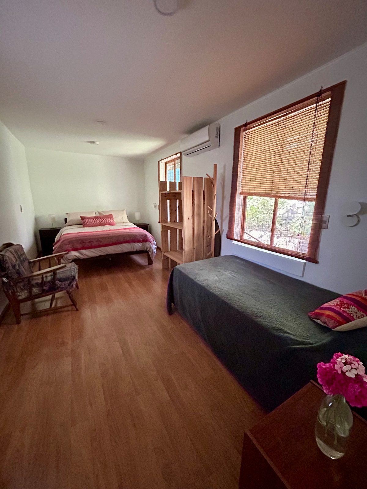 Casa interior aislada. Excelente conectividad. A pasos de metro Plaza Egaña. Conexión en minutos con el centro y distintas zonas de Santiago. Entorno seguro y tranquilo ubicado a un par de cuadras del mall Plaza Egaña, cines, restaurantes y múltiples servicios. Un luminoso estar que cuenta con sofá-cama, comedor y cocina incorporada, además de una zona de escritorio. El amplio dormitorio tiene salida a la terraza y vista al cielo. Estacionamiento compartido con anfitriones. Tenemos una perra ❤️