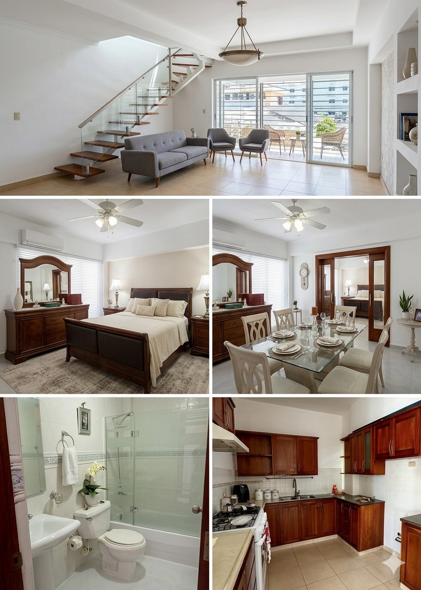 Disfrute de una vida de lujo en el corazón de Piantini, la zona más exclusiva de Santo Domingo. Este departamento de 2 dormitorios, con un diseño precioso, está totalmente equipado para estancias cortas o largas y cuenta con una cocina moderna, wifi de alta velocidad y aire acondicionado en todas las habitaciones. Disfrute de una impresionante azotea con piscina, áreas de descanso y vistas a la ciudad, ideal para relajarse después de un día de actividades. Con una ubicación ideal cerca de los mejores restaurantes, centros comerciales y centros de negocios.