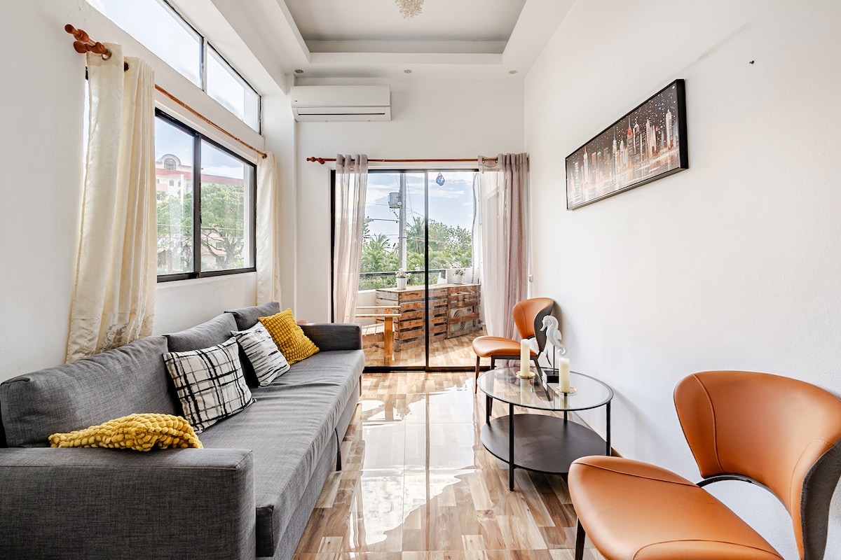 Disfruta de una estancia con vista al mar moderno y acogedor apartamento de 1 habitación, perfectamente diseñado para recibir hasta 3 huéspedes con comodidad. Relájate en un jacuzzi privado y vive momentos únicos en una terraza exclusiva, ideal para disfrutar del clima, un café al amanecer o una copa al atardecer. El espacio cuenta con una sala luminosa, cocina equipada y todo lo que necesitas para sentirte como en casa. Su ubicación esta cerca de todo, pero con la privacidad que mereces