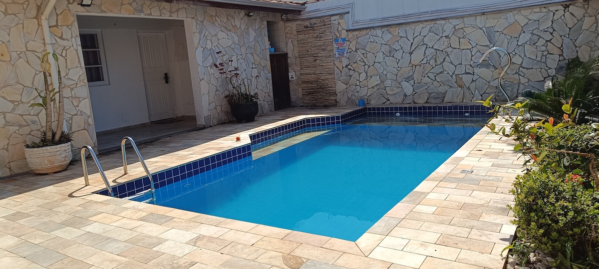 Una casa construida para albergar cómodamente a mi familia, ahora disponible para ti, tu familia y amigos. A tres cuadras de la playa, es espaciosa, aireada y equipada para garantizar una estancia inolvidable. La ubicación es súper conveniente, ya que está a pocas cuadras de supermercados, farmacias, etc., sin perder la tranquilidad que te mereces. Está cerca del centro histórico, a 15 minutos en coche de Riv. de S. Lourenço y a 5 minutos del ferry a Guarujá. ¡Estaré encantado de hospedarles!