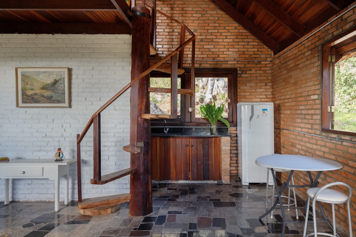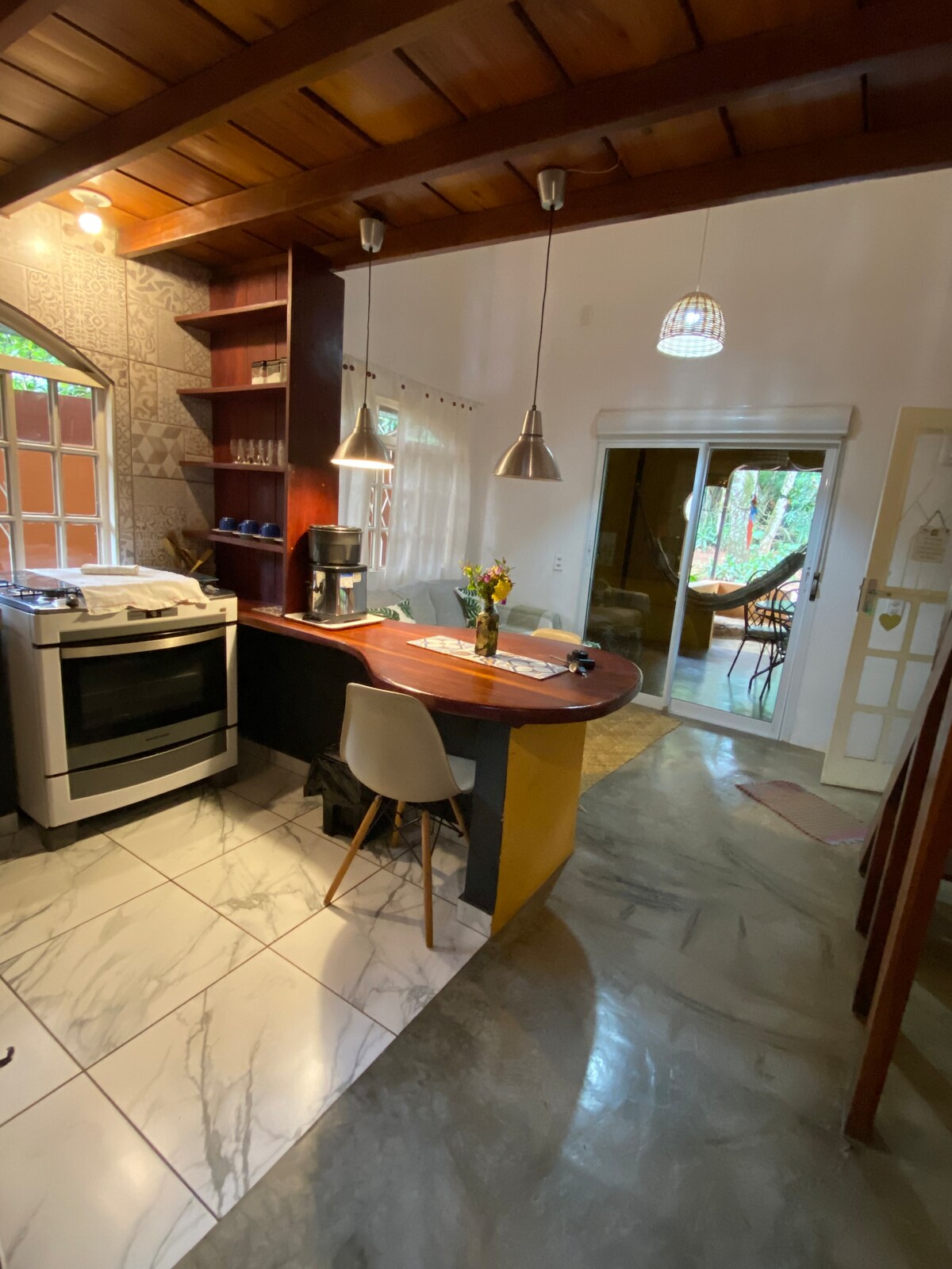 Chalet elevado tipo palafita inspirado nas construções ribeirinhas amazônicas e sudeste asiático, cercado de muita área verde, reserva ambiental e excelente vista do Parque Nacional. Ampla área privativa para relaxar, com redes e cozinha aberta completa. Casas em técnicas ecológicas, reuso de materiais e bioconstrução. Processos ecológicos de saneamento. Separação adequada dos resíduos sólidos e 100% de compostagem dos orgânicos. Hortaliças e frutas orgânicas disponíveis. Insta: casa_pantoja