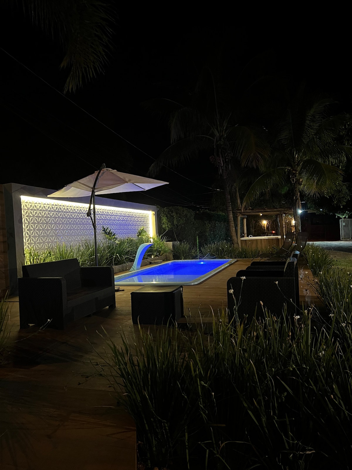 Este lugar único tiene su propio estilo, cómodo y ideal para pasar unos días relajándose... tiene agua para 6 personas con cromoterapia, con pantalla con proyector (entrada HDMI) orientada a la hidro, donde es posible ver desde relajarse en el agua caliente un poco de película o Videoclip... cocina gourmet con mesa de billar... tiene perrera, oficina y sala de televisión 60pol. En el lateral de un mercado y hay dos cuadras de una panadería. Vecindario y vecinos tranquilos.