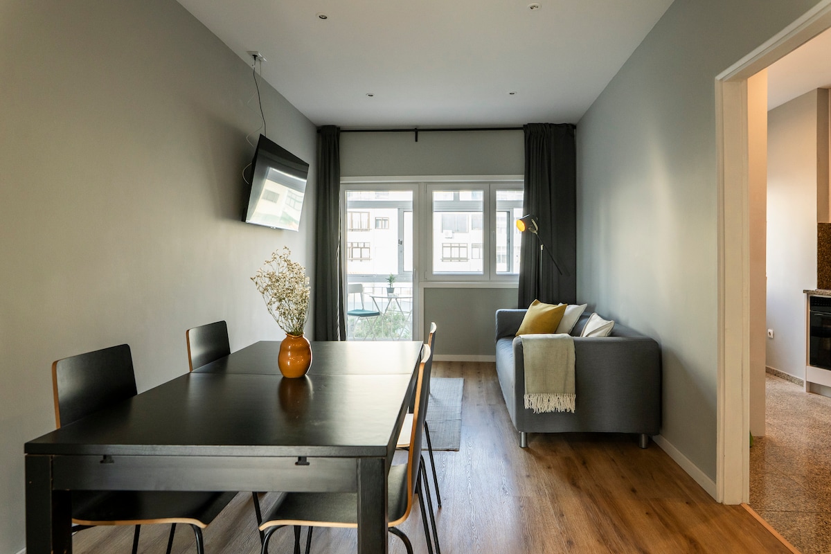 Apartment near Porto city centre. Located at 250m from Bolhão station, 500m to Aliados Avenue. Shops, restaurants and typical portuguese dishes in the area. Hosts 2 adults + 2 small children (1 bed and 1 collapsible sofa). The apartment has cooking equipment, bed and bath linen, laundry with wash machine and 2 WC's. It is equipped with strong WiFi connection, desk, chair and monitor for work from home (WFH) people that want to enjoy Porto center. Direct sunlight during most part of the day.