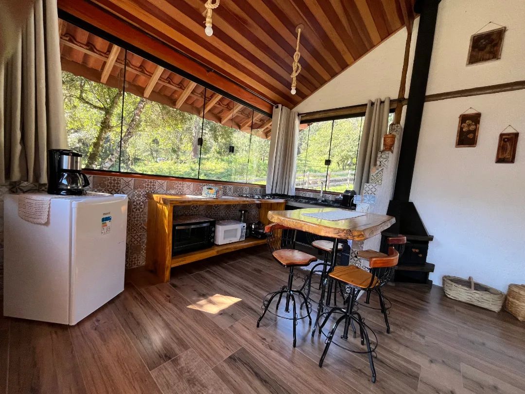 A 1.600 m de altitud, al pie de la Pedra do Forno, el lugar está casi completamente cubierto por bosque nativo. Con vistas a la Pedra do Bode, la casa está rodeada de araucarias por donde pasan armadillos, monos, pájaros y ciervos (posiblemente jabalíes). Ventanas y puertas centenarias, mucho vidrio, muebles de los años 50. Baño caliente, con calefacción a gas. Cocina gourmet con estufa de leña, parrilla, horno eléctrico, estufa moderna y lavavajillas. Wifi con buena velocidad.