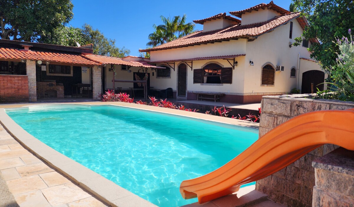 ¡Disfruta de un verdadero paraíso con toda tu familia y amigos! Nuestra casa de campo está situada en un punto estratégico que ofrece fácil acceso a las playas y al centro de Saquarema, al mismo tiempo que preserva la privacidad y la tranquilidad de la naturaleza. ¡Aceptamos a tu mejor amigo Pet!