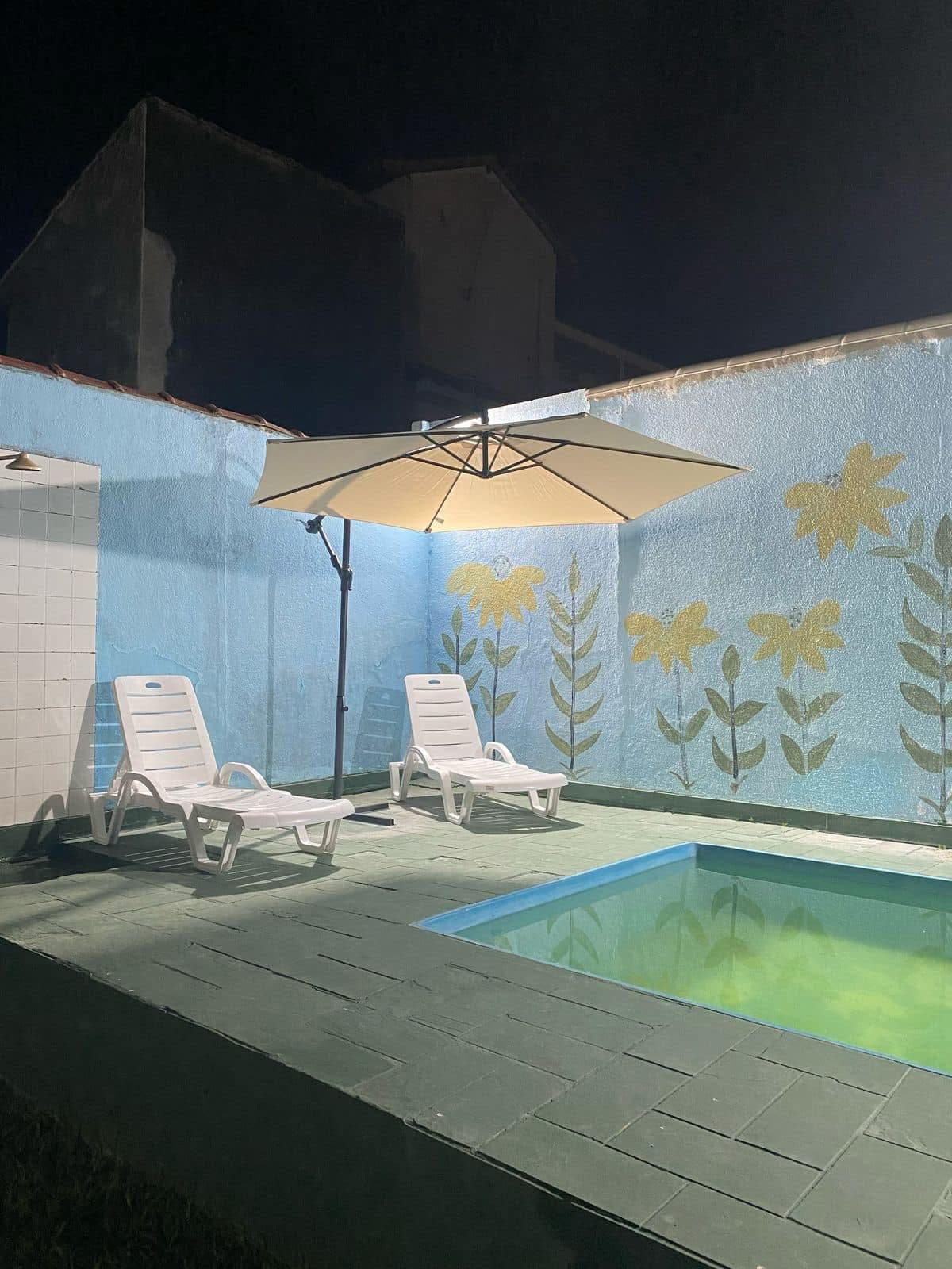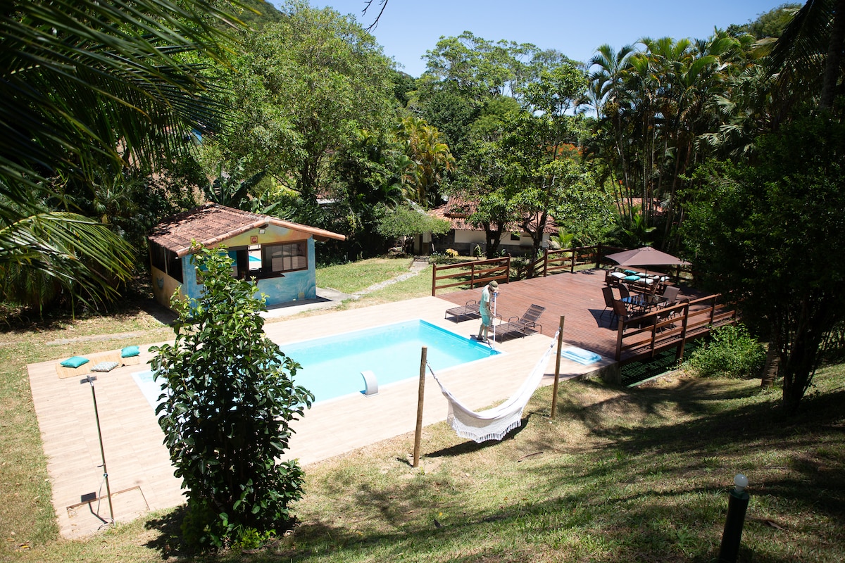 Casa de huéspedes entera, en la parte trasera de la parcela, acogedora, bien equipada con electrodomésticos y otros utensilios, ropa de cama y bañera, que contiene: 1 dormitorio (cama doble) con aire acondicionado, entresuelo (colchón doble) con aire acondicionado, sala de estar (bi box) con ventilador, cocina americana, 1 baño. Zona de ocio, para uso exclusivo del huésped, con cocina con barbacoa, piscina y baño con ducha. Está a aproximadamente 140 metros de la playa, frente a la Reserva Massambaba.