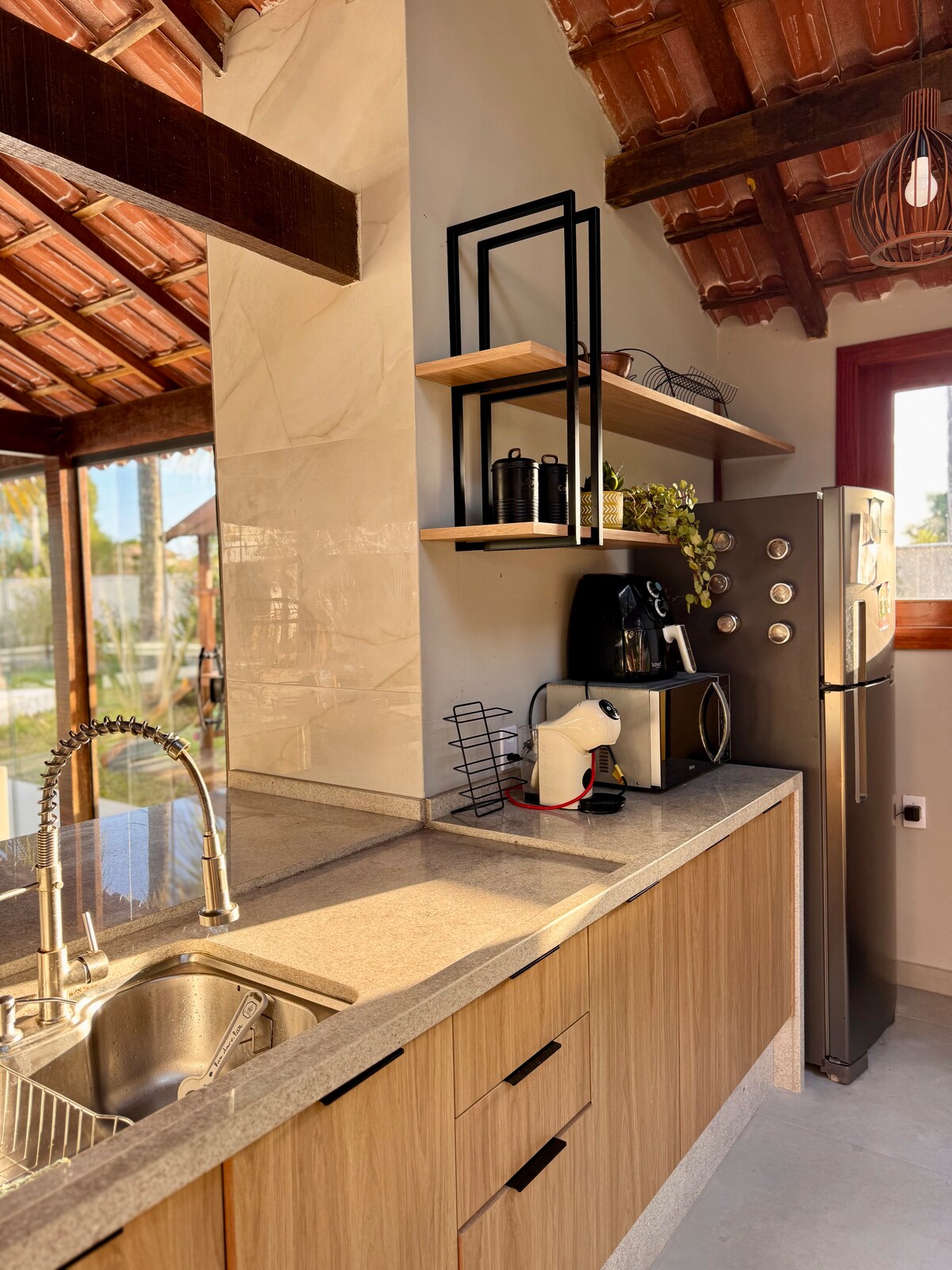 ubicada a 1,5 km de la playa de itauna, (5 minutos) y (8 minutos) del centro de saquarema (EN COCHE), casa para alojar hasta 2 personas, excelente patio con árboles y césped, casa sencilla pero totalmente equipada con elementos esenciales. patio compartido vivimos y trabajamos en el lugar atendiendo a estudiantes de personal en nuestro estudio