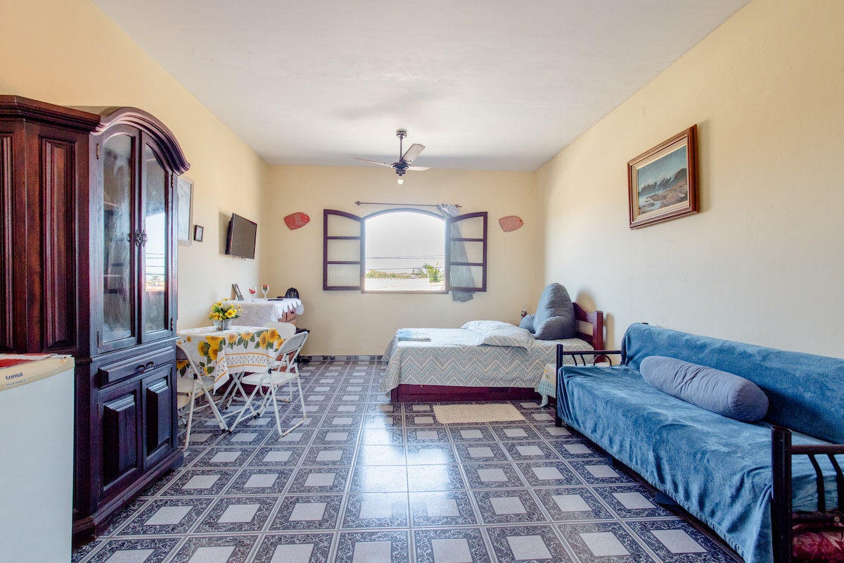 Acogedor estudio con balcón privado totalmente equipado con vistas al mar y a la iglesia de Saquarema. En Praia da Vila, cerca del centro, el comercio y frente a la playa. Cuenta con instalaciones como microondas, cafetera , minibar y vajilla. Se admiten mascotas pequeñas. No ofrecemos internet.