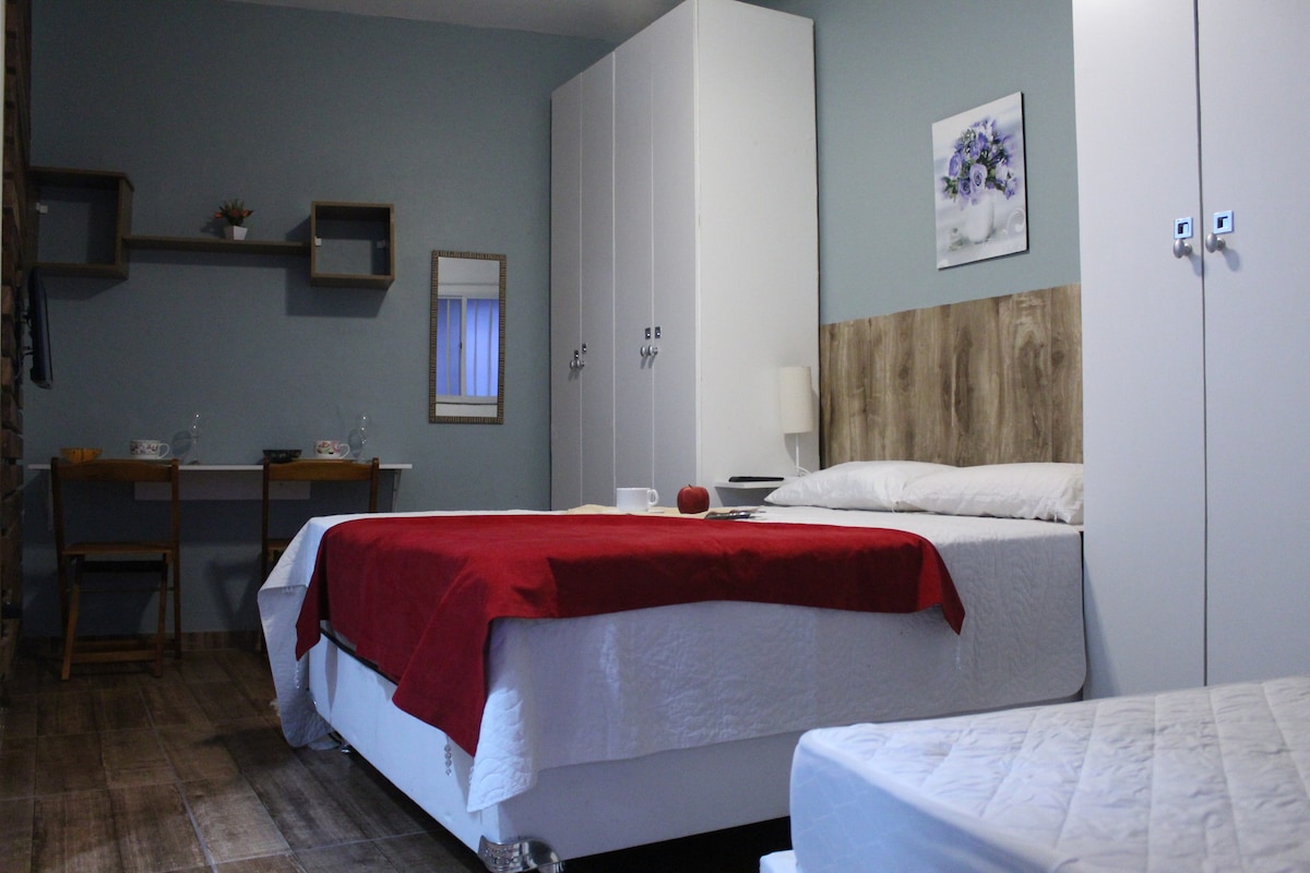 Esqueça de suas preocupações neste lugar espaçoso e tranquilo. Studio privativo com cozinha. 2 camas de casal, 1 delas possui cama de solteiro embaixo só puxar. Sendo a capacidade para até 5 pessoas. Obs: - Não servimos café da manhã. - Não aceitamos pet! - É proibido visitantes! - Área de lazer com piscina compartilhada com todos os hóspedes da pousada.