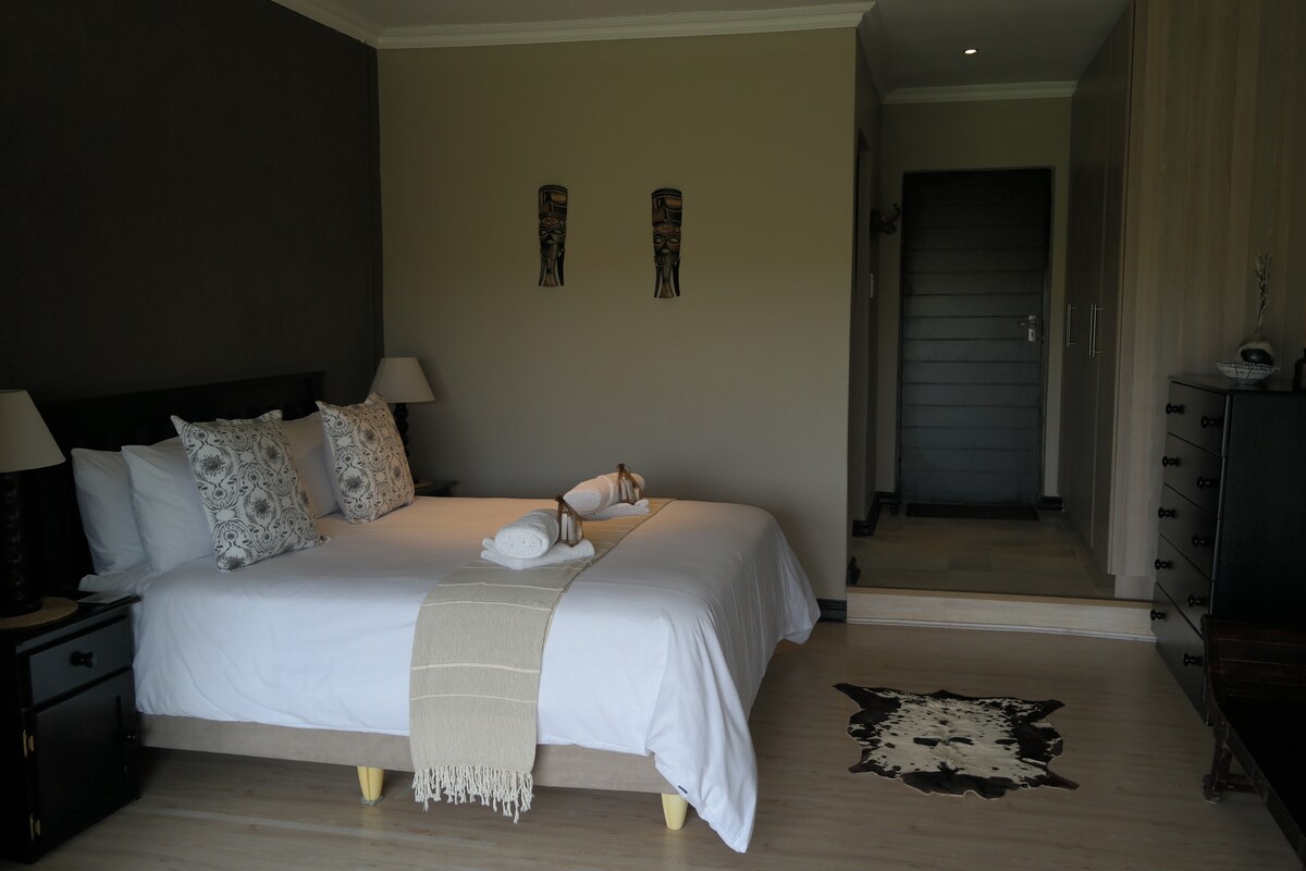 River Cottage está situado en Natures Landing, una finca ecológica segura, donde los impalas y los antílopes jeroglífico vagan libremente. El estudio independiente, privado y con cocina tiene capacidad para dos personas y cuenta con baño privado y cocina americana. Se encuentra a pocos metros del río Bushman y se puede disfrutar de las maravillosas vistas desde la gran terraza. Hay barbacoa disponible. Rema río arriba y disfruta de la avifauna y experimenta la llamada del águila pescadora. La unidad es completamente privada. Dstv completo y wifi.