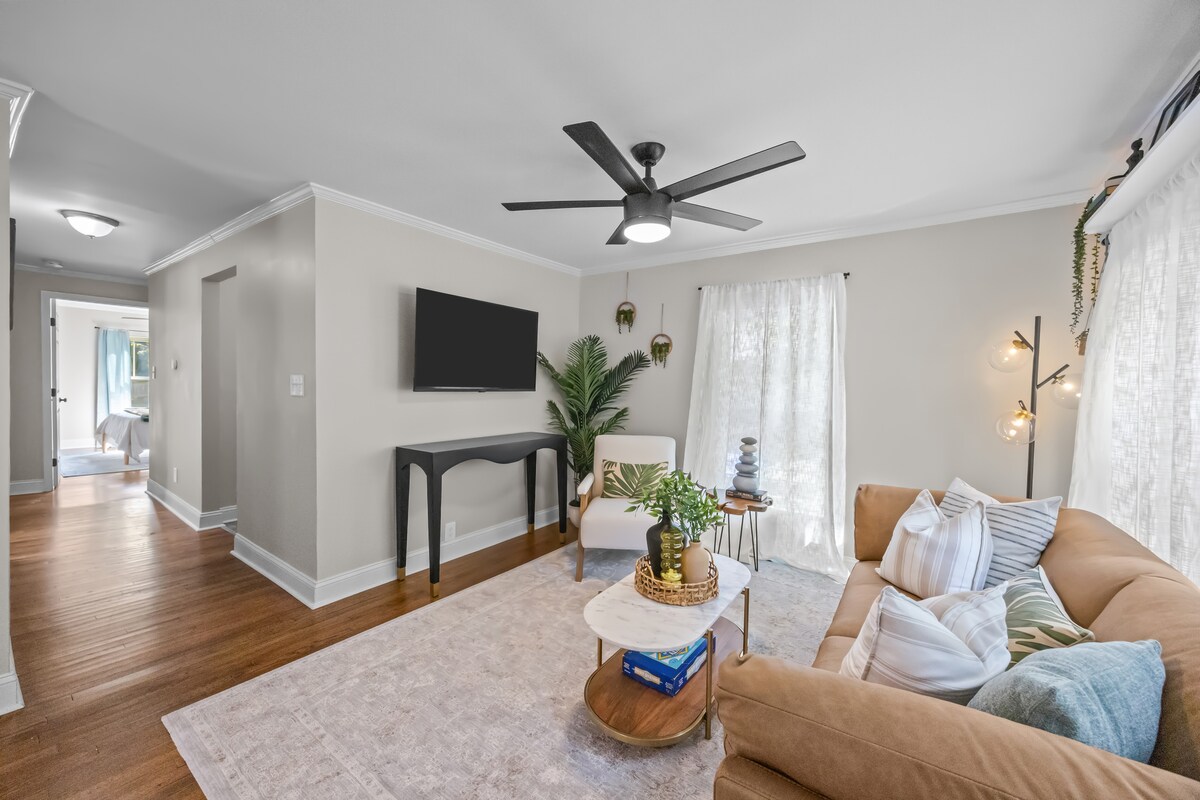 ¡Sin perfume! Apartamento en el primer piso con mucho aparcamiento fuera de la calle bien iluminado. Camas muy cómodas con sábanas blancas y frescas, cocina totalmente equipada, baño totalmente equipado y sala de estar con TV de pantalla plana de 58 pulgadas y asientos cómodos. Zona de trabajo dedicada, con iluminación, enchufes y puertos USB adicionales. Porche delantero con sillas y vistas a una hermosa calle tranquila arbolada. ¡Nos encanta viajar y esperamos que disfrutes de la comodidad y las comodidades que ponemos en este apartamento!