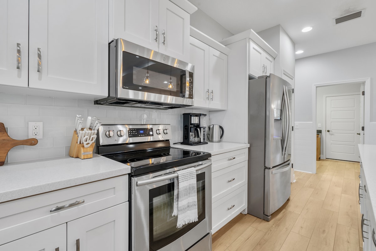 Disfruta de la vida a 4 cuadras del Golfo, a ½ milla de Siesta Key, la playa número 1 de Estados Unidos. ¡Con fácil acceso a la escena gastronómica y artística de Sarasota, las playas de arena blanca de Siesta, St. Armand's y la aventura de la Costa del Golfo! Bungalow boutique de 2 habitaciones • Capacidad para 6 personas • 4 camas Situado en el codiciado Distrito Costero (“West of Trail”): cocina del chef, equipo de playa, televisores inteligentes, bañera de hidromasaje de mármol, lavandería, wifi rápido. Asa langosta bajo las estrellas, relájate en tu jardín tropical y recorre senderos entre palmeras para llegar a cafés y disfrutar de atardeceres junto al agua.