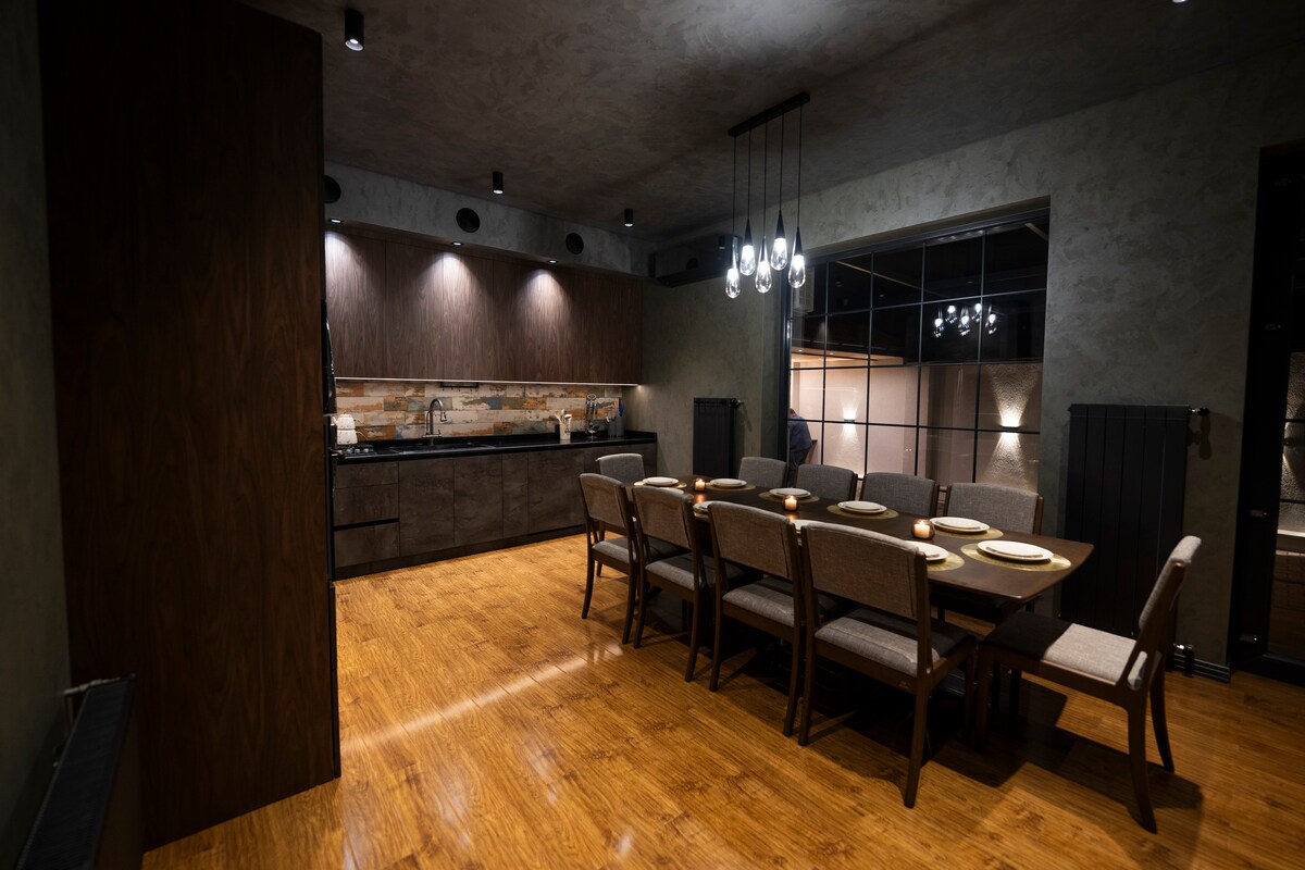 Villa de lujo nueva en una excelente ubicación, muy cerca de la playa, restaurantes, cafeterías y clubes de playa. Situado en la carretera principal, con un supermercado abierto 24/7 y un puerto de carga de vehículos eléctricos enfrente. Vista panorámica del mar Caspio. Apto para familias, tranquilo y limpio. Estacionamiento para 2 coches. Disfruta de juegos al aire libre (dardos, frisbee, bádminton) y juegos de interior (televisión, juegos de mesa). Cocina y barbacoa totalmente equipadas. Regalos de bienvenida: café, naranjas, carbón, vino. El salón de belleza Next, nuestro vecino de pared, ofrece hammam, sauna, gimnasio y servicios de belleza solo para mujeres.