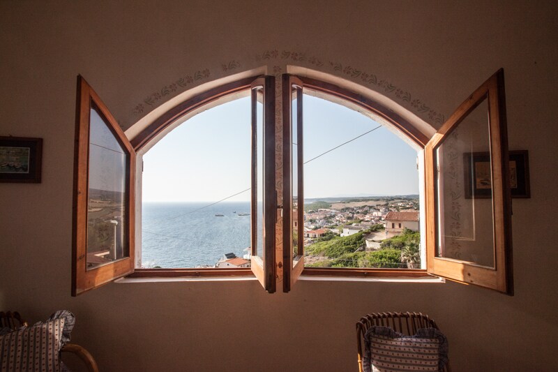 Amplia casa de dos plantas rodeada de vegetación y a un paso del mar. La casa consta de una sala de estar en la planta superior, con terraza con vistas al mar, y una zona de dormitorios con dos dormitorios y dos baños en la planta baja. Se accede al jardín desde ambas plantas, lo que aporta a la casa paz y privacidad. Se llega al mar a pie en 5 minutos. Las playas de S'Archittu y Santa Caterina se encuentran a 5 minutos en coche, las de la península de Sinis a 30 minutos y la zona costera de Bosa se alcanza en 40 minutos.