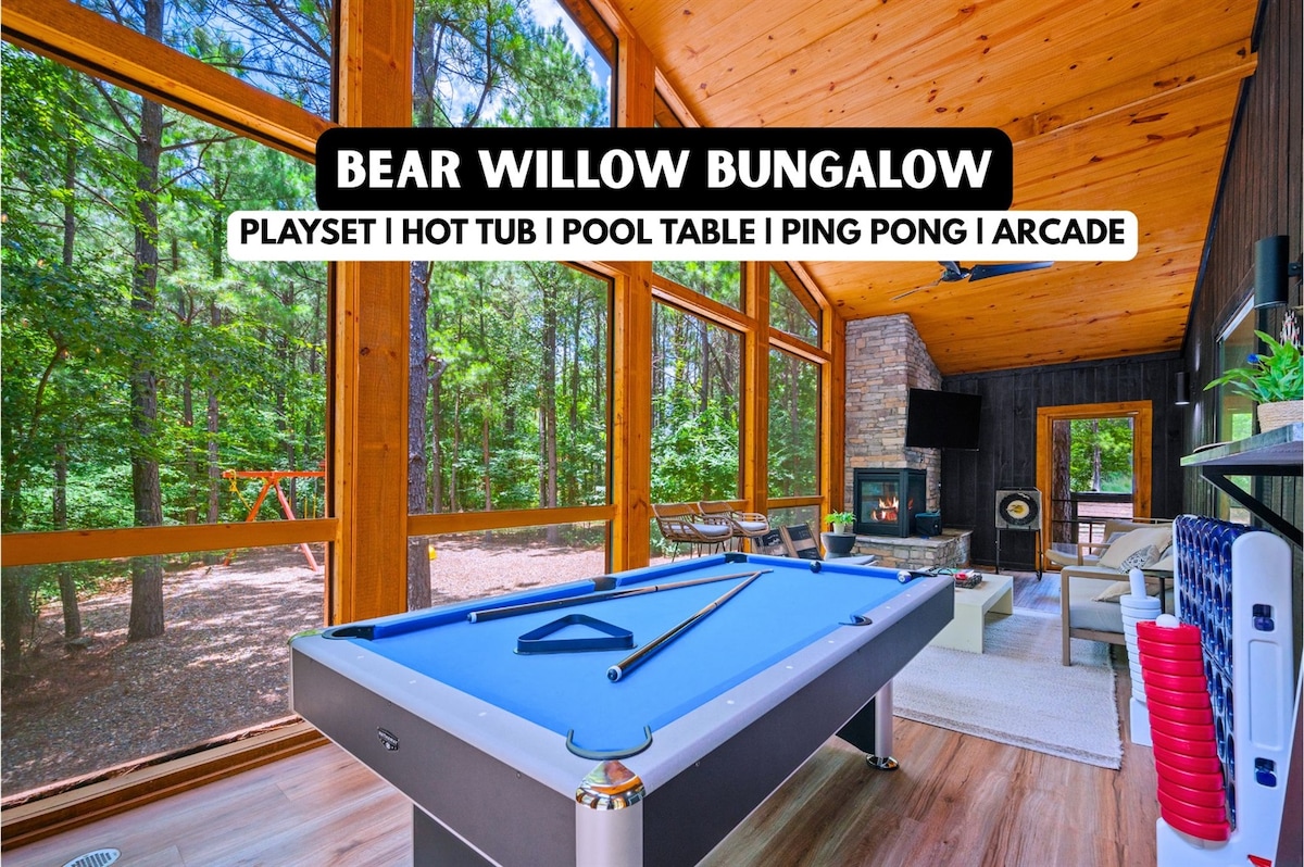 Welcome to INTERSTELLAR – a magical retreat for couples, families, and furry friends! With two king suites and a Queen Sleeper Sofa, it comfortably sleeps up to 6. Relax in the HypeDome with your morning coffee or take in the peaceful creek views. Enjoy the hot tub, arcade, board games, and playset for nonstop fun. Escape to INTERSTELLAR for a truly unforgettable getaway! ✨