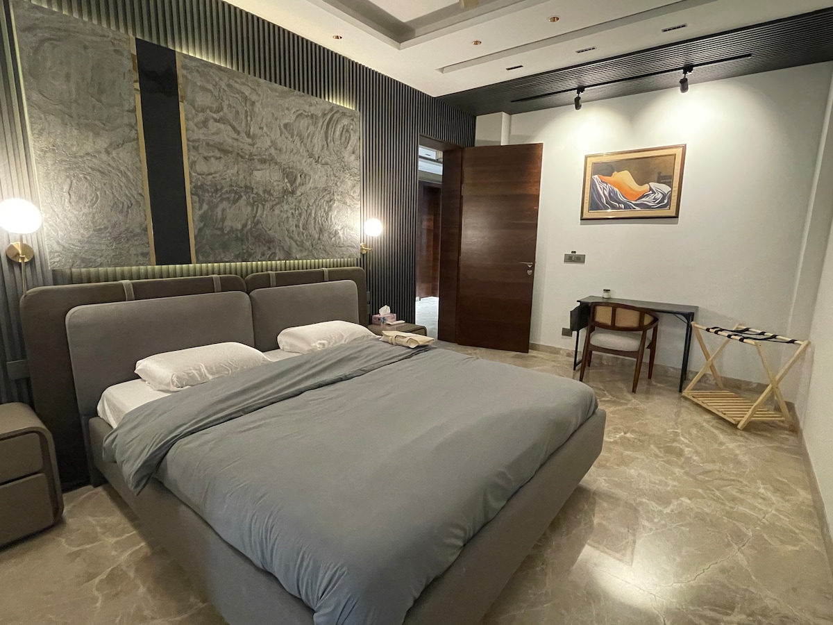 Habitación privada de lujo + despensa y baño (@ Golf Course Road) con acceso independiente desde el bungalow, ubicado en la zona más céntrica y prémium de Gurgaon. * Ambiente hogareño con anfitrión experimentado. * Aparcamiento GRATUITO dentro de las instalaciones. * ¡Limpieza diaria y servicio de limpieza GRATIS! * Wifi GRATUITO, Hotstar y Netflix en Chrome-cast * Respaldo de energía 24 X 7 e iluminación automatizada para mayor comodidad. * A 180 metros del Mega Mall, a 800 metros de la estación de metro de Sikanderpur, a 1,5 km de Cyber City.