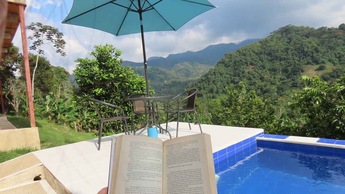 Despierta cada mañana con una vista relajante hacia la piscina y las montañas, ideal para refrescarte y disfrutar de momentos de calma y reflexión. El lugar está equipado con todo lo necesario para que te sientas como en casa. Disfruta un clima agradable ideal para relajarte al aire libre o dar paseos por sus alrededores. El espacio está diseñado para desconectarse del estrés diario. Relájate en un ambiente sereno, rodeado de naturaleza y lejos del ruido de la ciudad. Te esperamos!