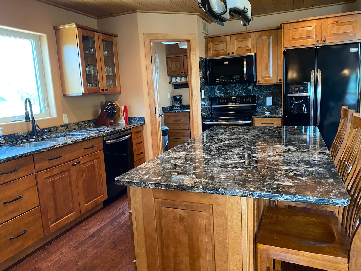Olvídate de las preocupaciones en este gran alojamiento: ¡es un oasis de tranquilidad! Disfruta de las vistas del lago de las praderas desde cualquiera de las dos cubiertas envolventes. Relájate y disfruta de las espectaculares puestas de sol en el jacuzzi al aire libre después de un largo día en el lago, el campo de golf o las pistas de esquí.