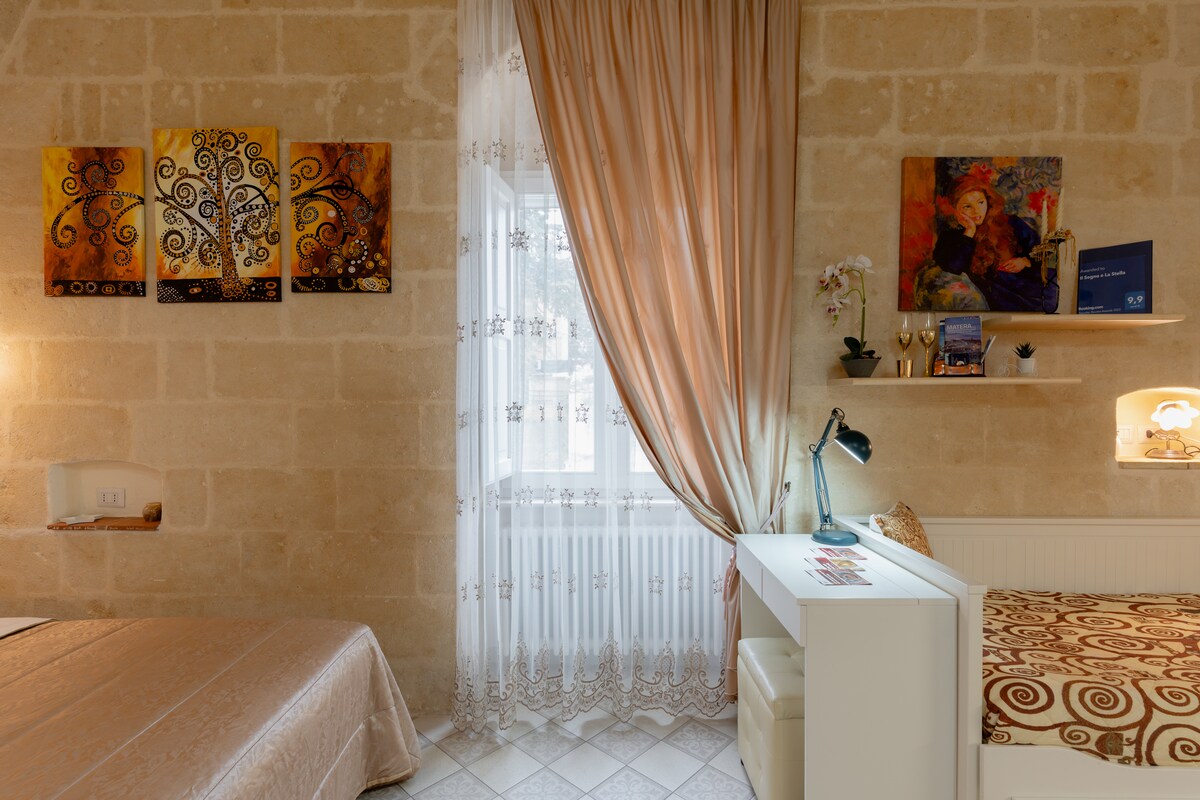 Caratteristico e suggestivo alloggio situato nel Sasso Barisano, centralissimo a ridosso di Piazza Vittorio Veneto, fornito di tutti i servizi. L'alloggio è composto da corte antistante e caratteristico ipogeo, vicinissima ai più bei monumenti della città tra cui la chiesa romanica di San Giovanni Battista in Piazza San Giovanni. Nelle vicinanze inoltre sono presenti tutti i servizi tra cui market, caratteristico mercato della frutta e del pesce, forni, negozi tipici, ristoranti, pizzerie e turist point.
