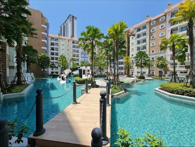 Apartamento de 1 dormitorio veneciano junto al parque acuático de Jomtien (acceso a la piscina)