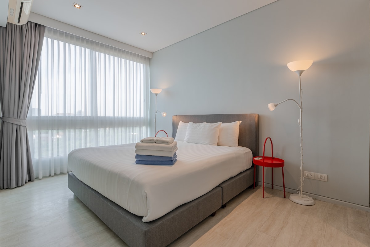 This is perfect place for holiday, you can walk to beach directly, enjoy large water park and many facilities. Room - 1 king size bed (6 ft.) - built in kitchen with hood & electronic cooker - refrigerator, microwave, kettle Facilities - Swimming pools with water park style with 2 sliders - artificial wave (Weekend only) - Indoor therapy pools - Huge Gym, Yoga room, Boxing room - Game room - Kids club - Beach access