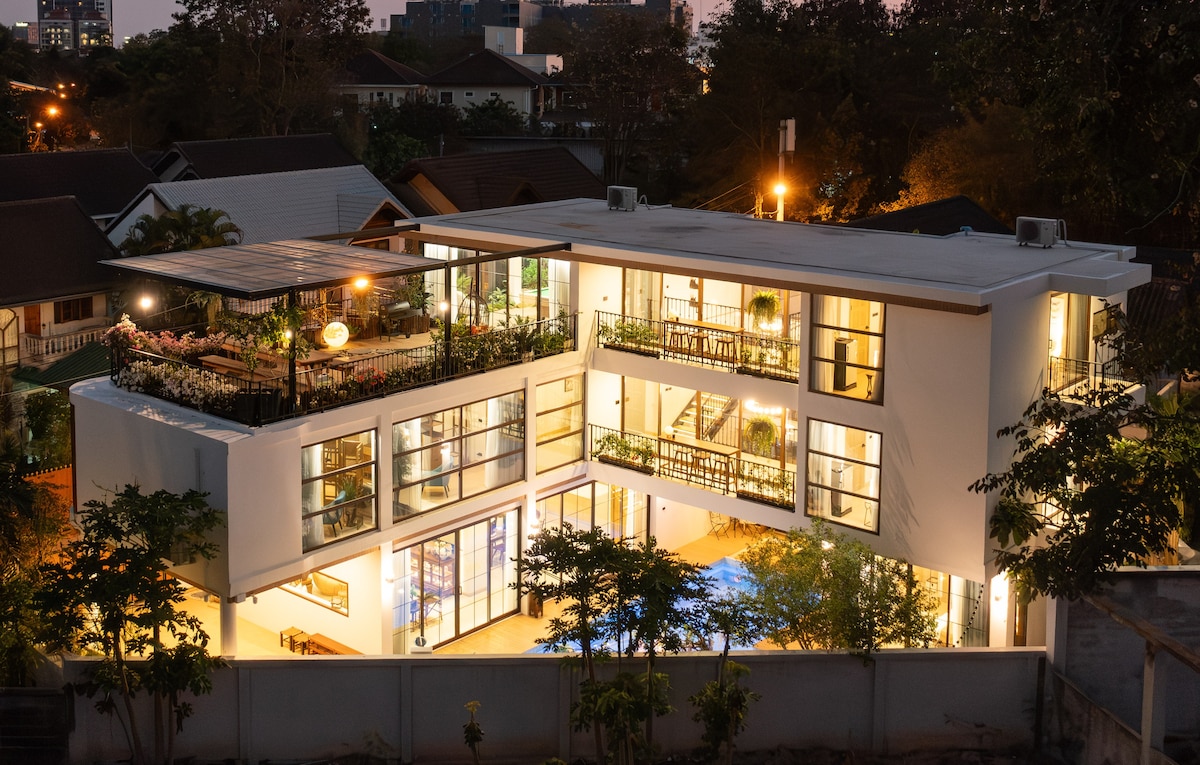 Villa privada de 4 dormitorios y 5 baños con piscina privada, cerca de la calle peatonal/playa a 10 minutos, se puede hacer barbacoa/sin cargo eléctrico