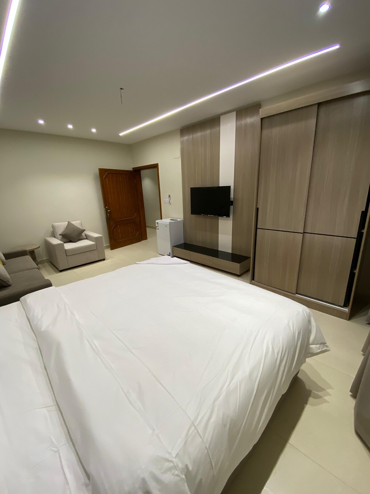 This furnished hotel apartment is located in the Al-Areedh neighborhood in Medina, offering a central location with easy access to all essential services. The apartment consists of two bedrooms, a spacious living room, a fully equipped kitchen, and a bathroom. The apartment is very spacious, providing comfort and privacy for guests. Right in front of the apartment is a walking path, perfect for enjoying a stroll, with numerous restaurants, groceries, and cafes nearby.