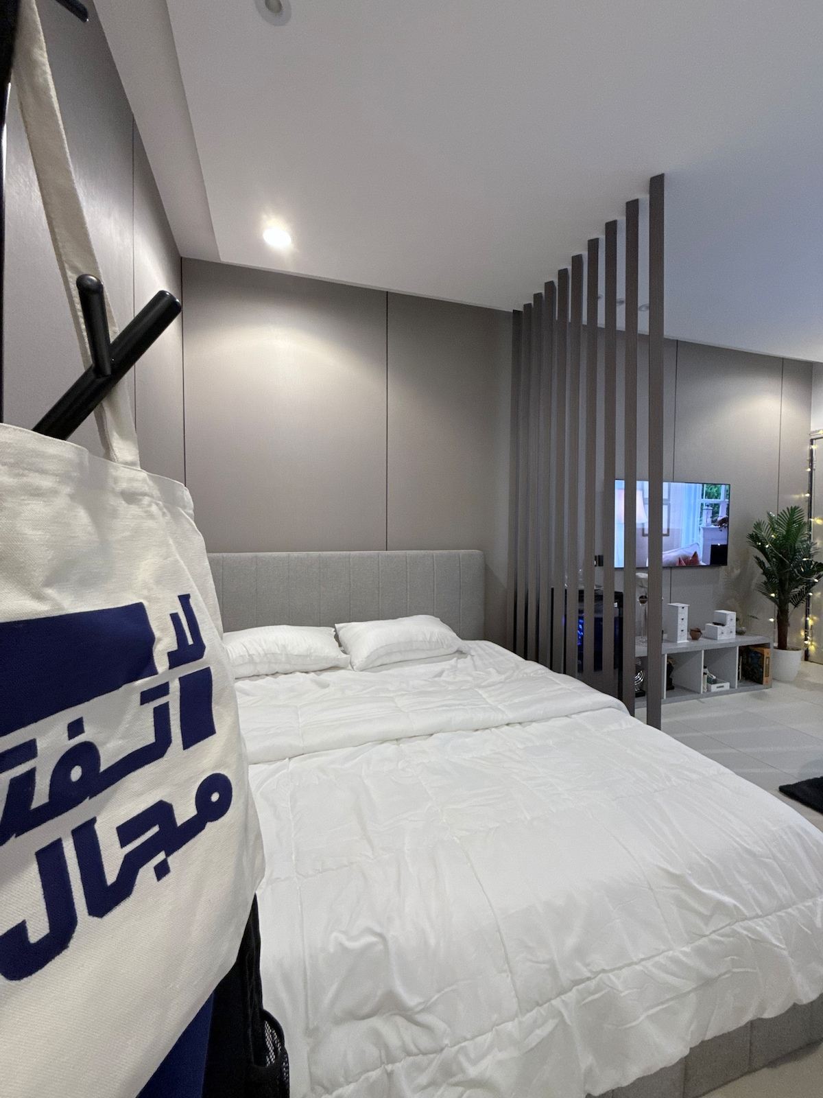 Un estudio lujoso y moderno en el exclusivo barrio de Al Aqeeq, a pocos minutos del Boulevard y del Centro Financiero Rey Abdullah (KAFD). Cuenta con aislamiento acústico para garantizar una tranquilidad total, con una pantalla inteligente de 70 pulgadas y autoinstalación para una flexibilidad total. Ideal para viajeros y gente de negocios que buscan privacidad y comodidad en un lugar especial.