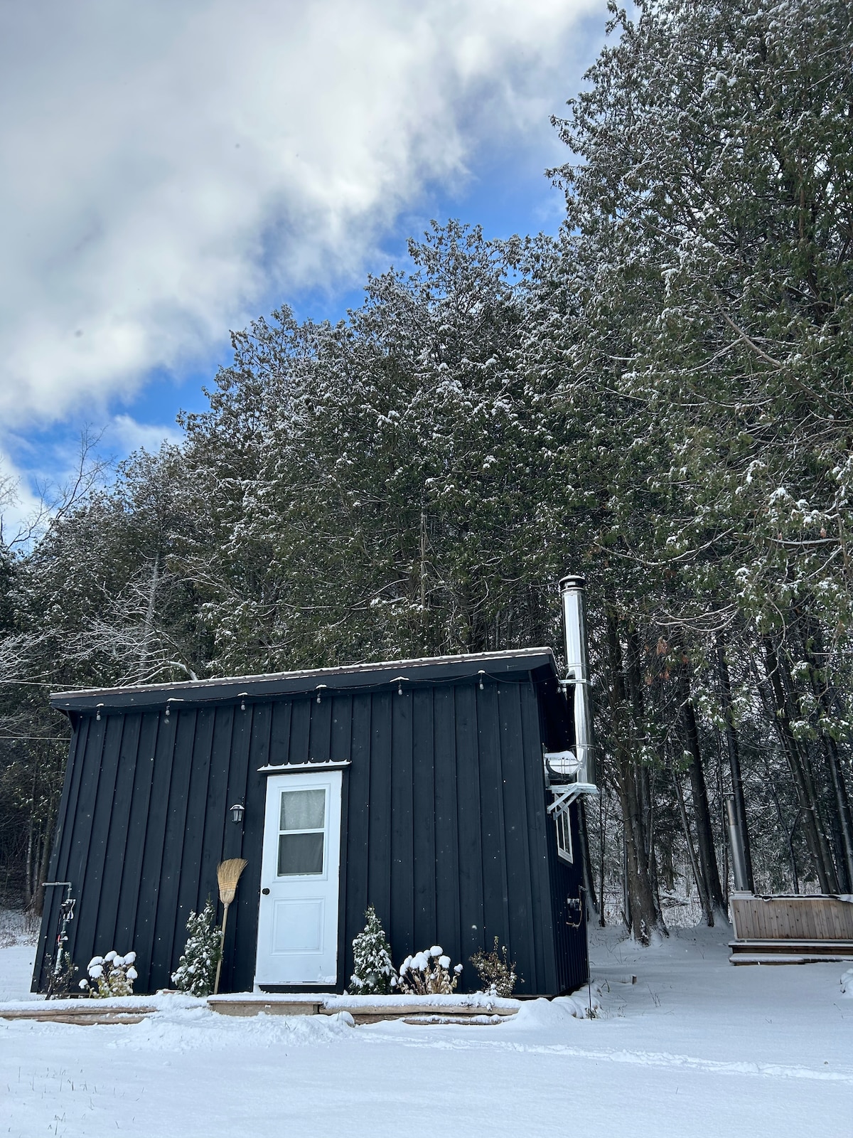 Experience a unique winter camping retreat for two in our wood-stove-heated tiny home. Complete with an outdoor shower, outhouse, covered hot tub, and a propane BBQ for cooking. The campfire pit and picnic table sitting area are open all year. This holiday rental setup is designed for couples and located on our working hobby farm right off a main highway. * Please note, the outdoor shower and bar closes seasonally due to freezing temperatures with no alternative available. Reopens May 2026.