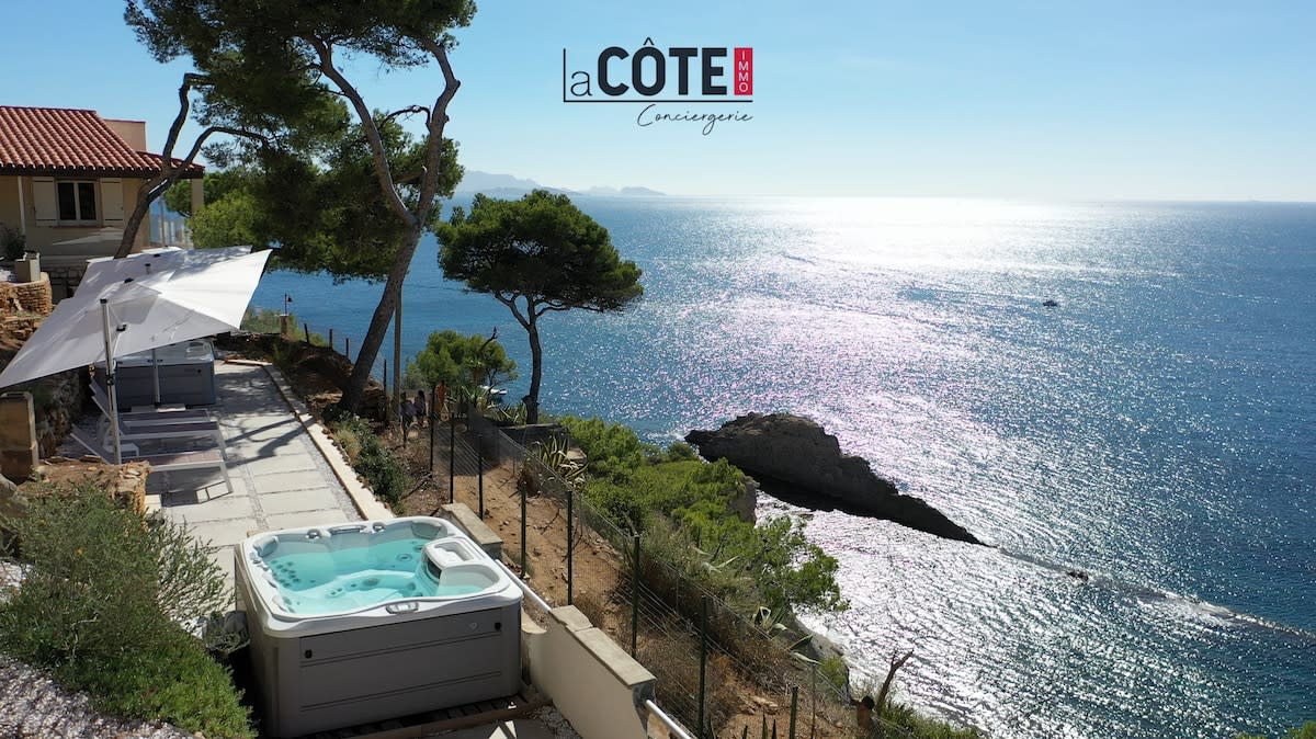 Loft de 70 m2 à 30 m de la mer, un de nos gites de la Madrague au creux d'une petite calanque authentique et calme. Très spacieux et lumineux, avec un petit jardin sous une tonnelle vue mer. Reposez vous dans le hamac ou les bains de soleil. Parfait pour les amateurs de baignade, snorkeling , randonnée, plongée... Les grands sites de Provence sont à 1 heure maximum. Accessible en train. A 20 minutes de l'aéroport et gare TGV. Pour un séjour romantique ou sportif. On y vient et y revient!