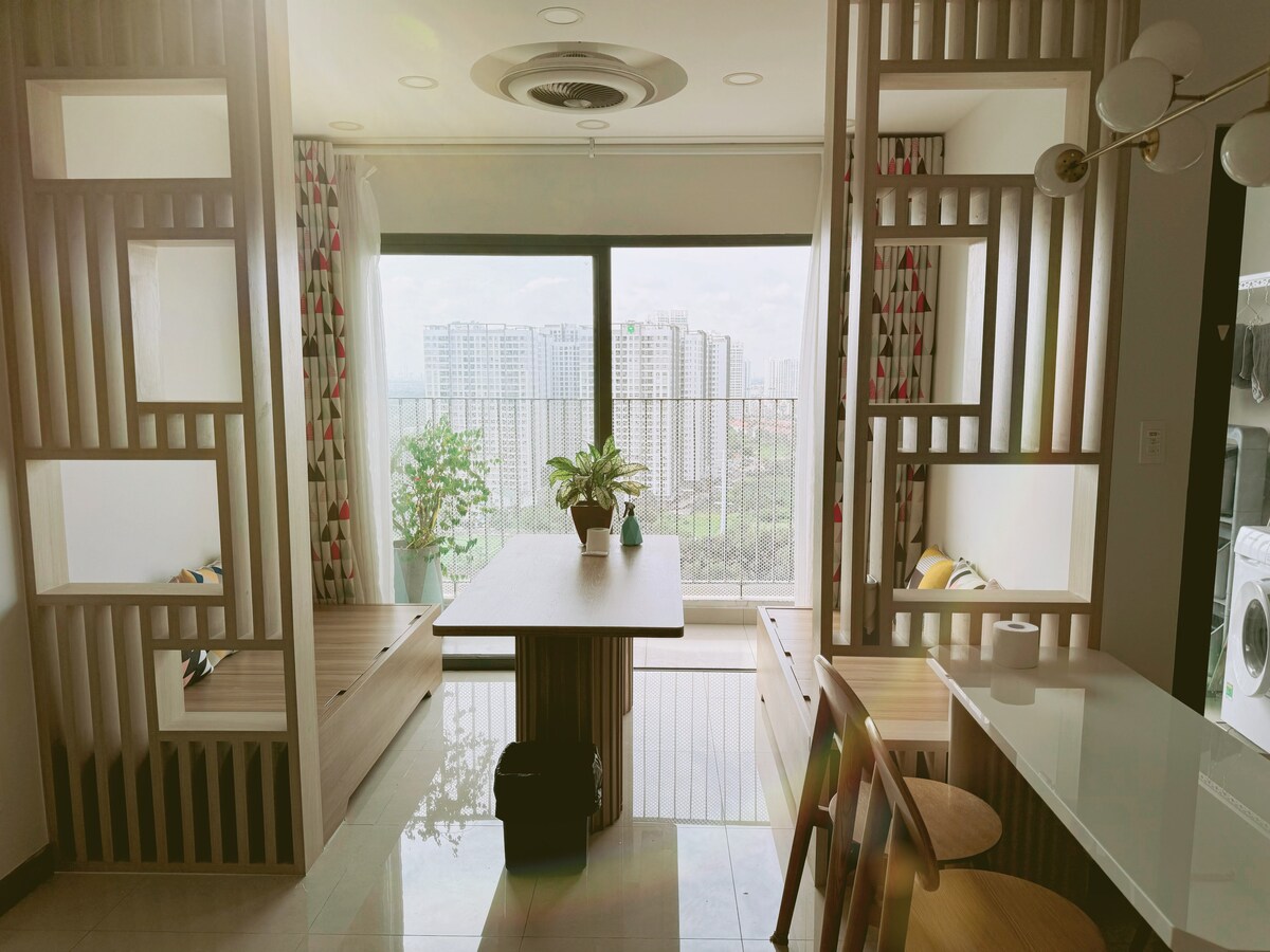 A bright Scandinavian-style balcony studio at Lavida Plus is thoughtfully furnished with everything you need for a comfortable LONG STAY 🌟, from fully stocked kitchen to an in-unit washer, making it feel truly like your own home. 🔥 SPECIAL OFFER: Book for 7+ days now to unlock our special WEEKLY DISCOUNT! Located in District 7, just minutes from Phu My Hung, RMIT, SECC, Vivo city and Crescent Mall. 호치민 7군 푸미흥 중심 아파트 SECC 전시장 및 비보시티 바로 옆에 위치한 현대적인 숙소입니다. 胡志明市第七郡 (富美兴/富美興) 高级公寓紧邻 SECC 展览中心和 购物中心